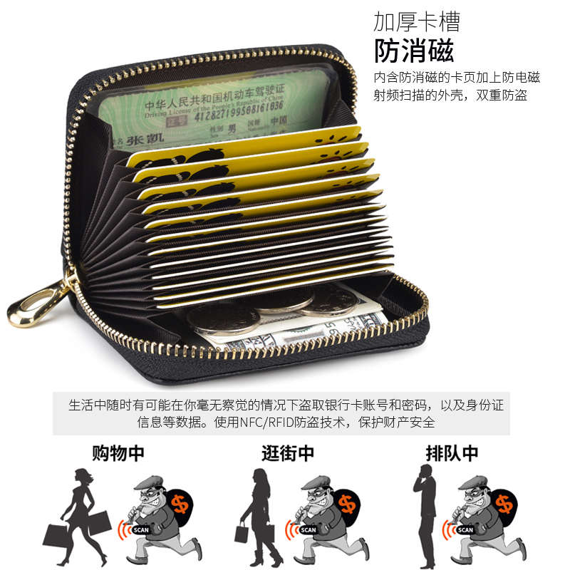 New 2022 genuine leather large-capacity multi-clamping card bag one-piece male sleeve female small mini-document card holder