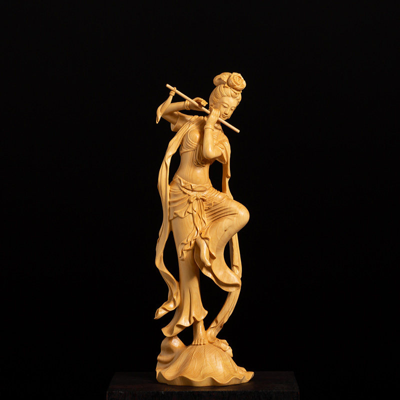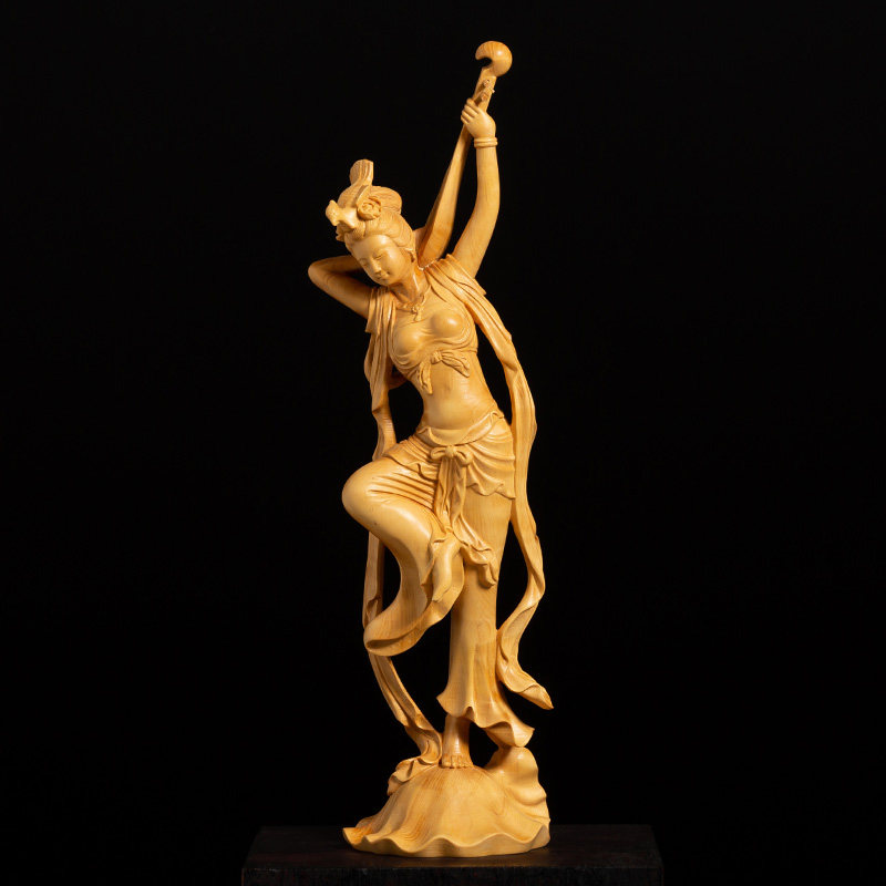 Boxwood carving Chinese creative solid wood living room carving handicrafts Figures Beauty decoration Dunhuang flying fairy