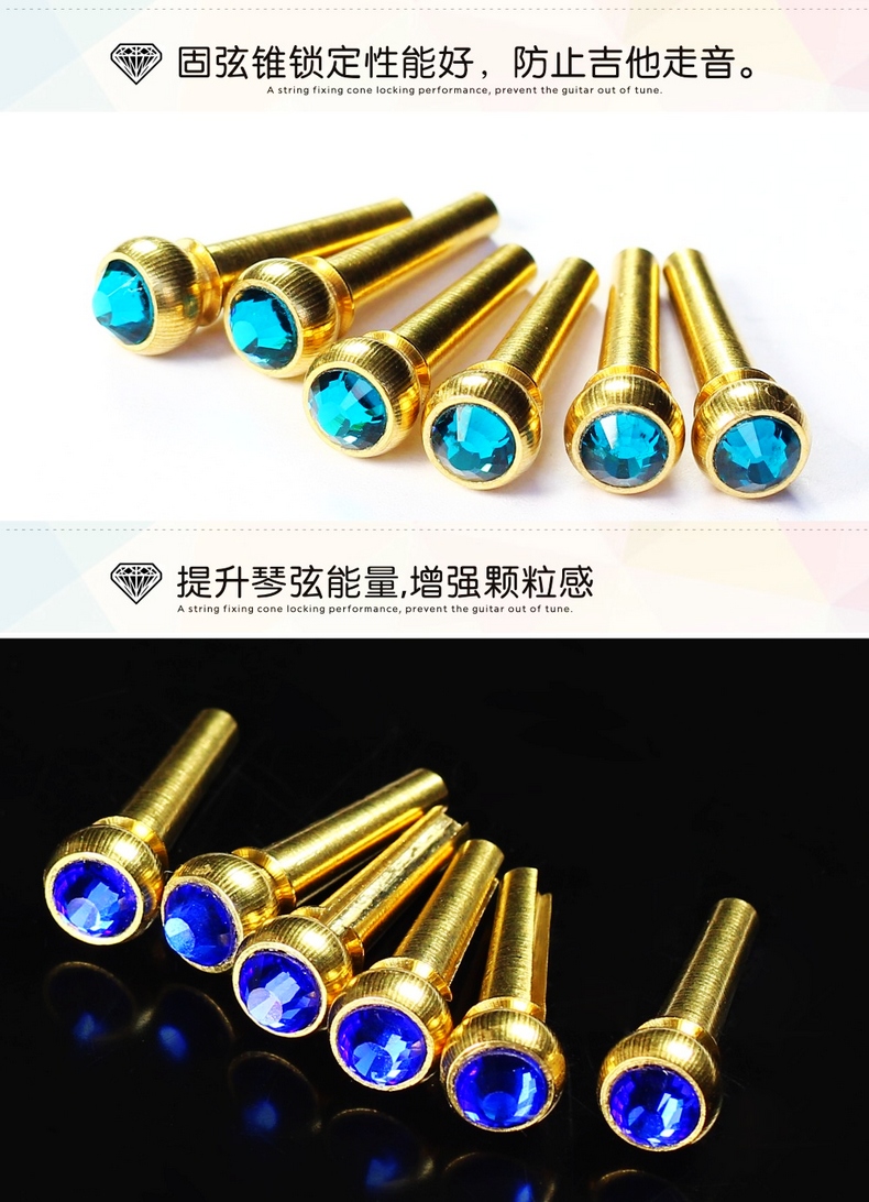 Pure copper crystal string column Wood guitar brass string nail Folk song guitar solid string cone extension sustain set of 6 sticks