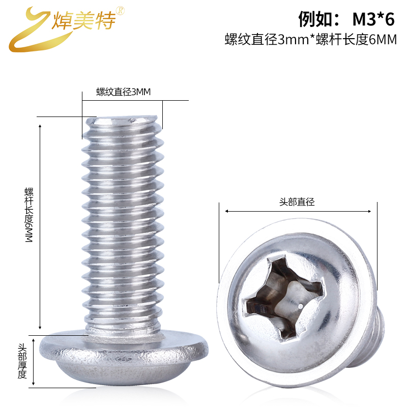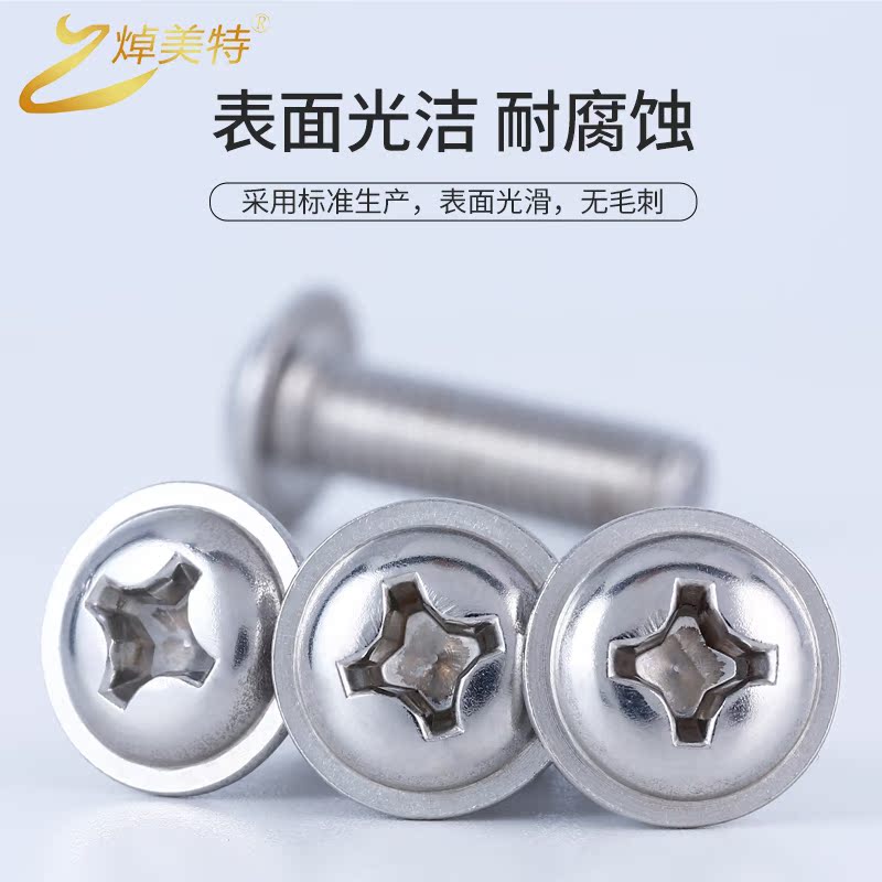 304 stainless steel M2M2 5M3 cross round head with cushion screw machine wire screw with medium screw M4M5