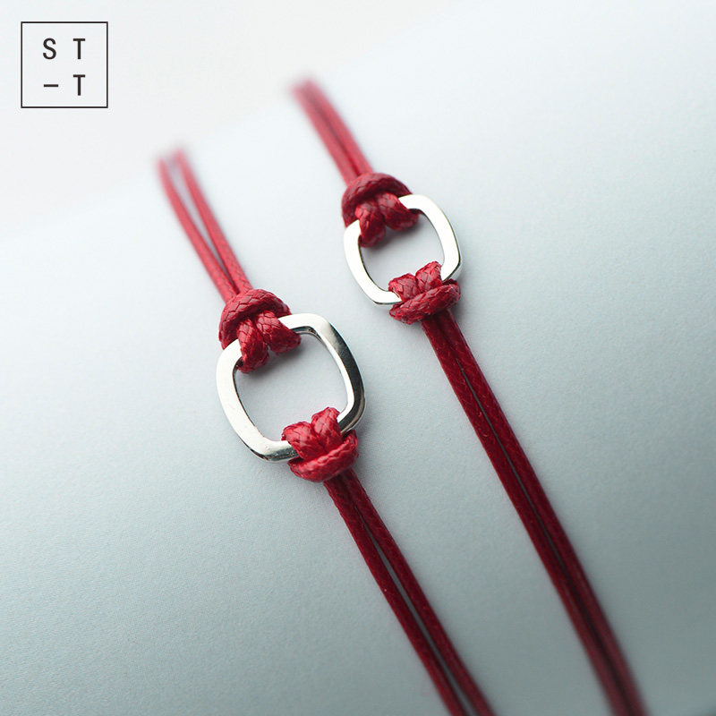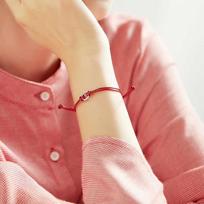 t Mrs Shen S925 sterling silver Year of Life hand-woven couple red rope bracelet female Korean version of the simple student hand rope
