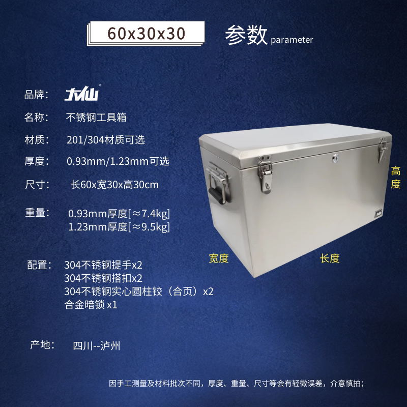 Daisen stainless steel tool box 304 large 201 waterproof anti-theft 60 storage shipping box transfer customized