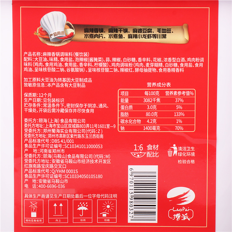 Soybean oil monosodium glutamate edible salt pickled chili (sauce pickles) garlic chili white sugar spices Sichuan pepper strong-flavor liquor chicken powder seasoning chicken powder seasoning flavor nucleotide disodium chili red yeast extract food