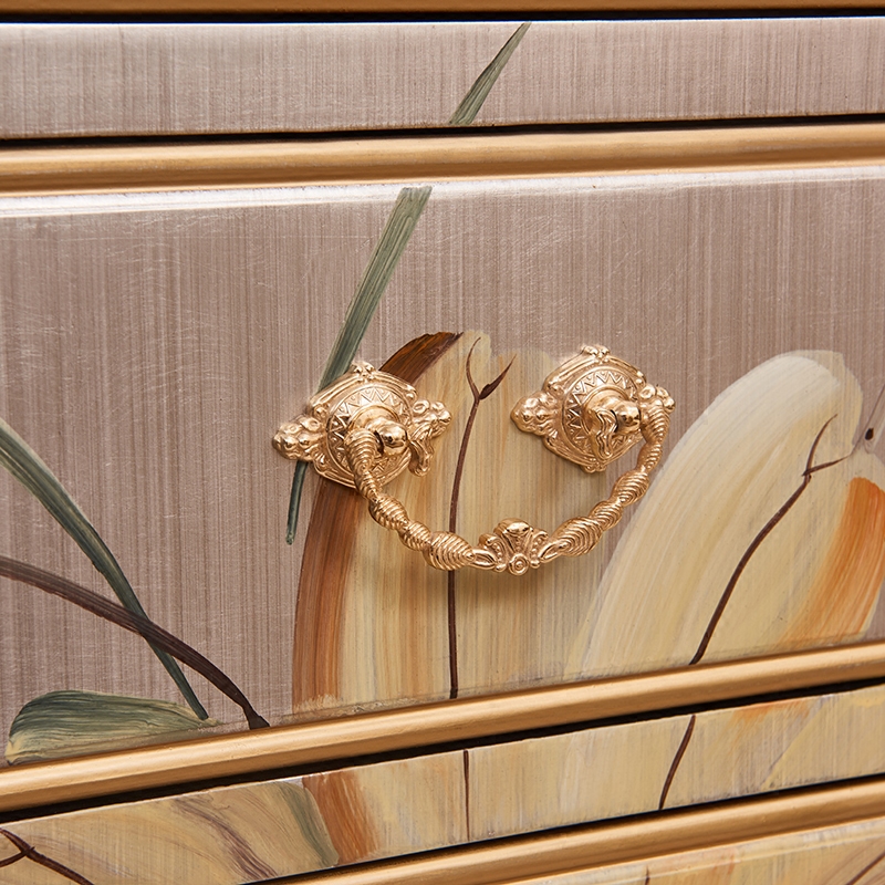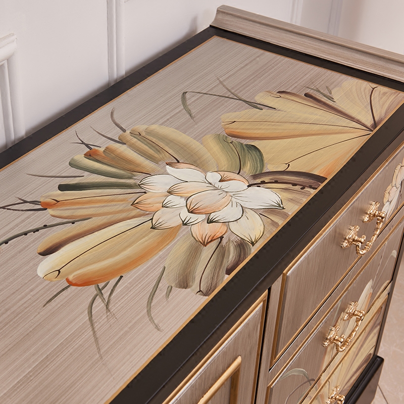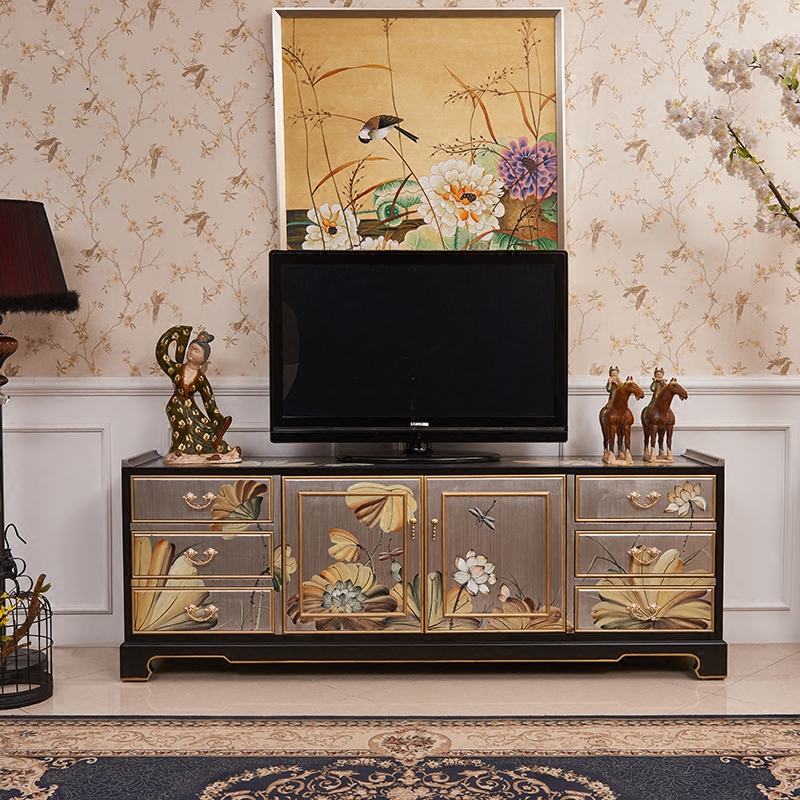 Painted lotus new Chinese high-end villa living room feng shui furniture two meters solid wood with drawers vertical TV floor cabinet