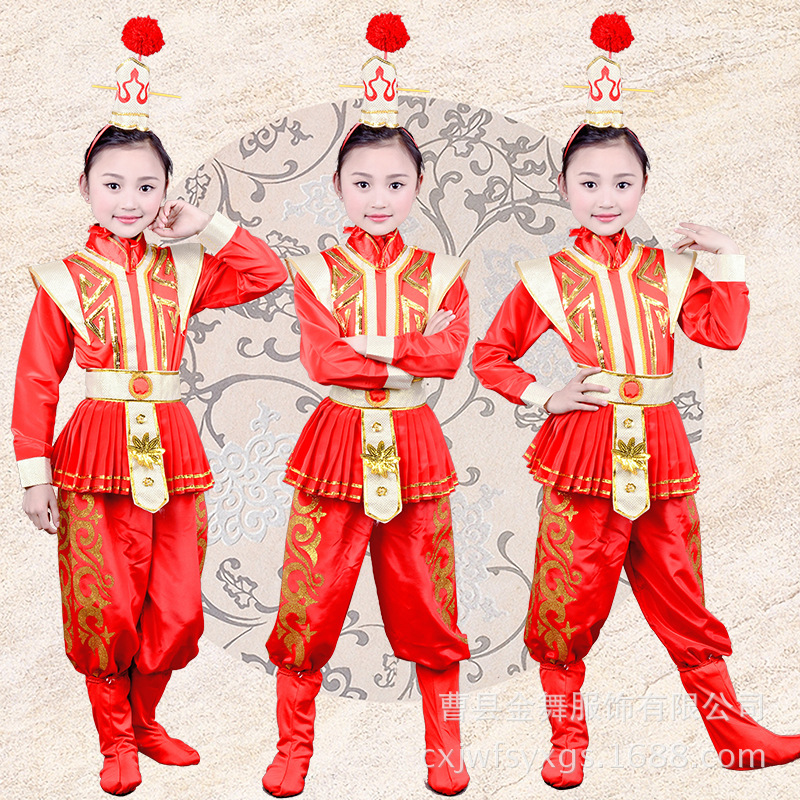 Young Children Ancient Clothes Hanfu Ancient Toddler Children Soldiers Wear Flowers and Mukui Yingying Table Performance Costume Opera Clothes