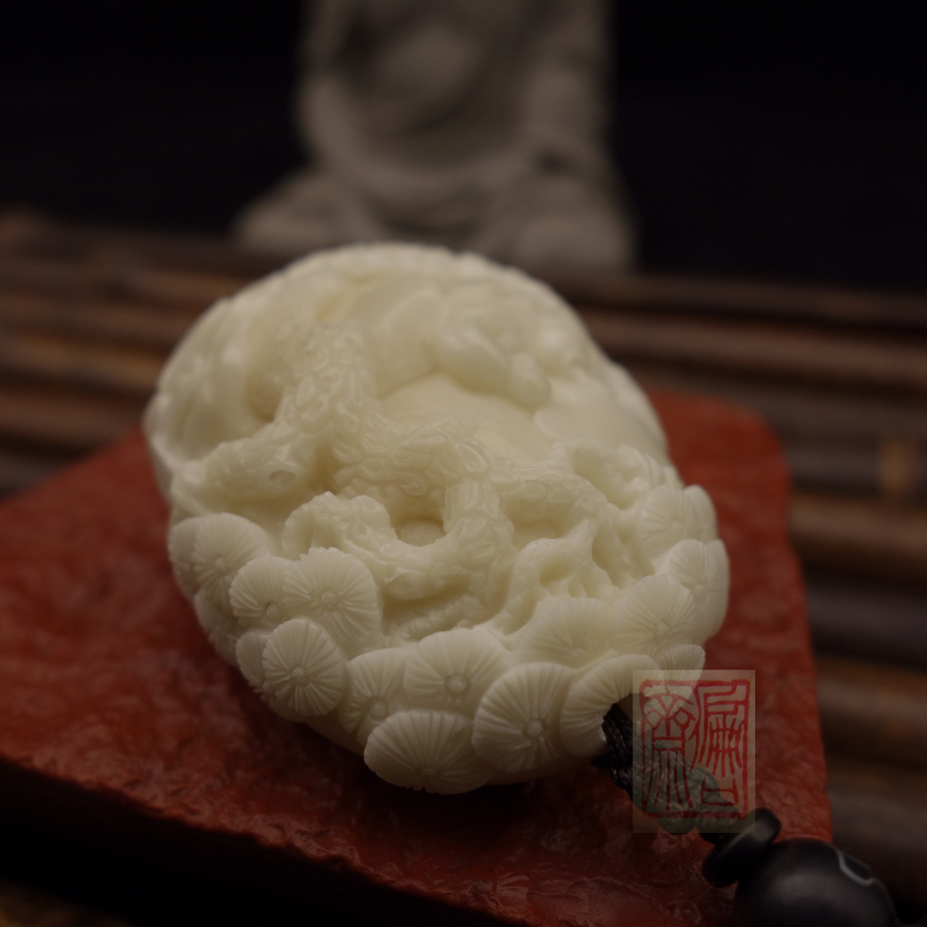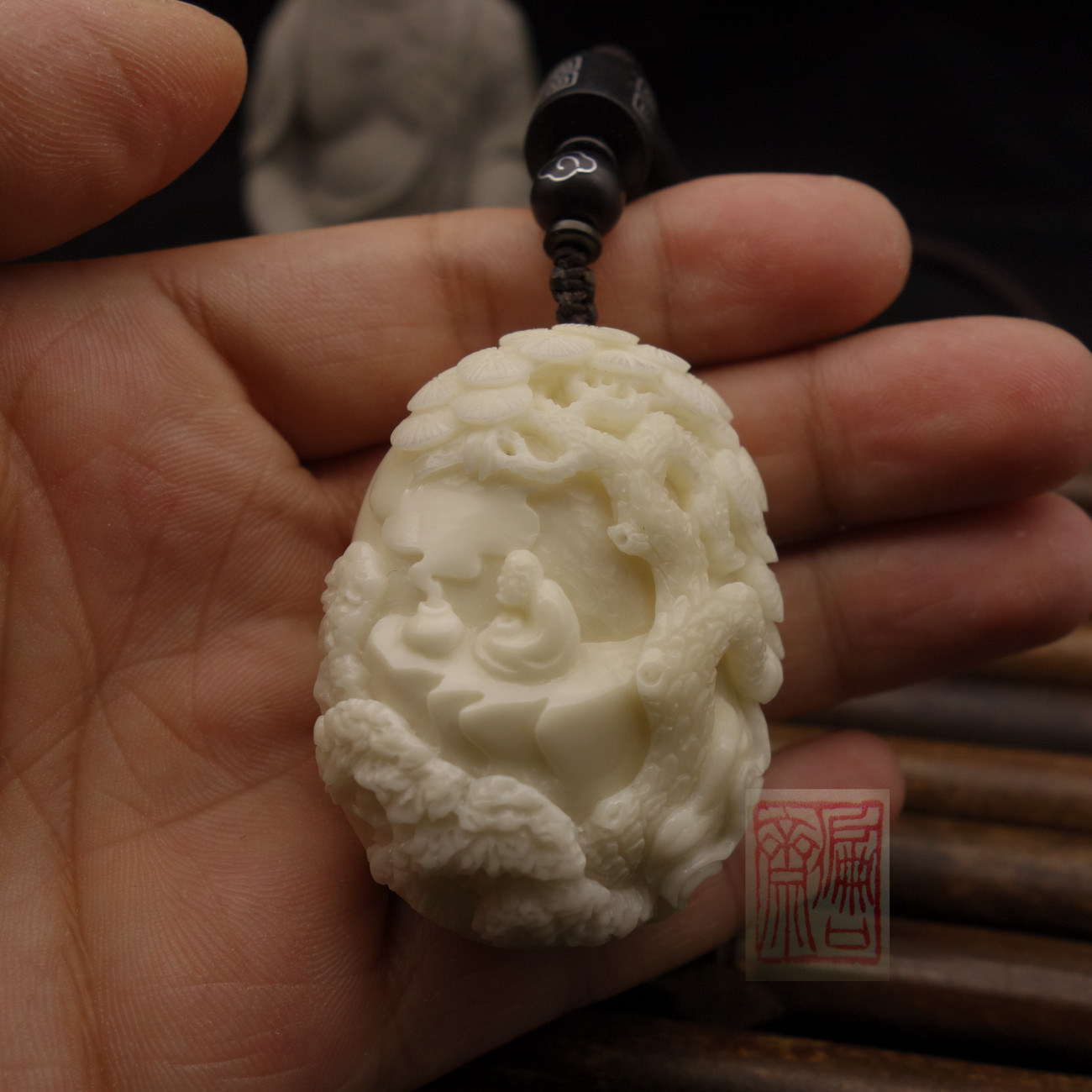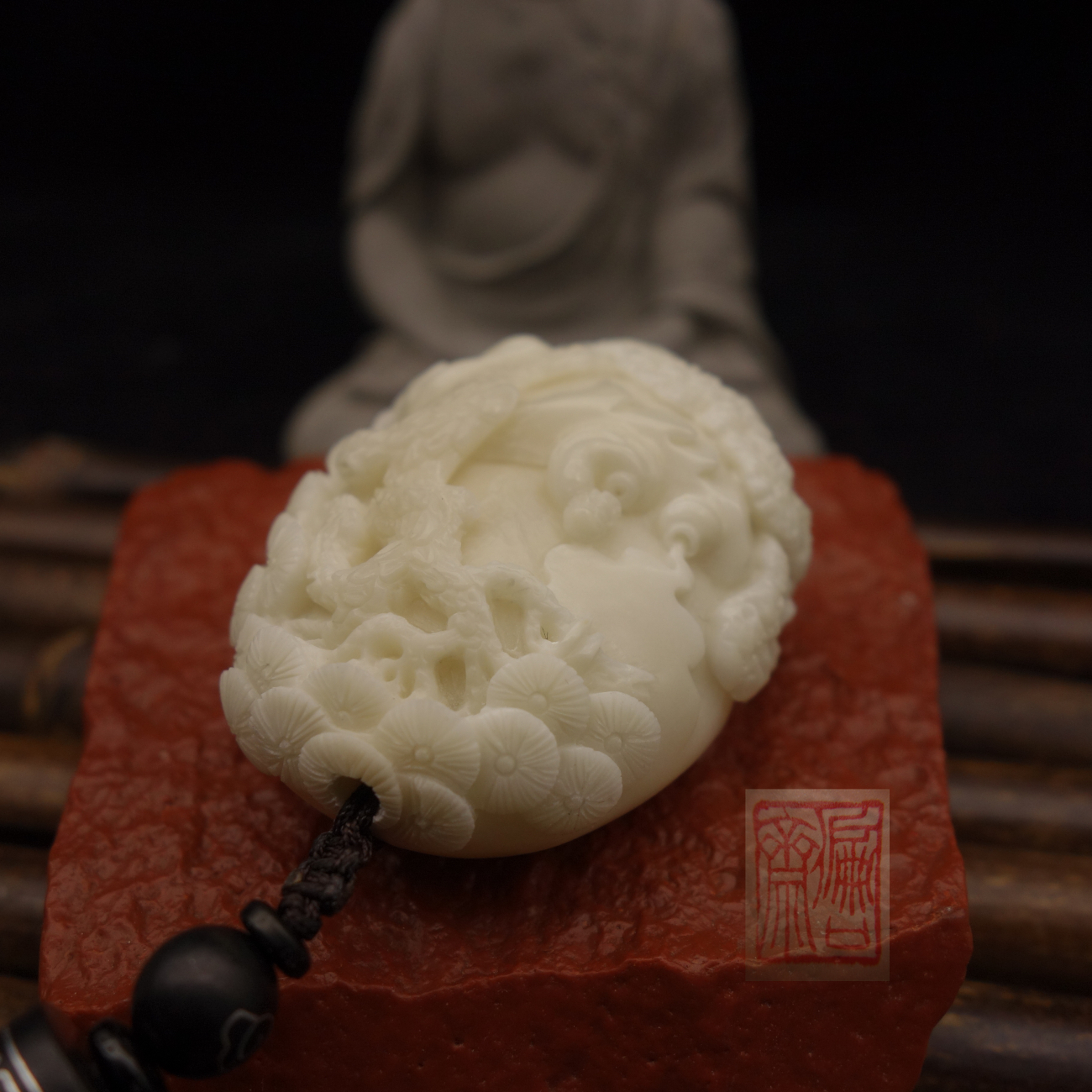 Piankouzhai, burning incense, hand-carved pieces of ivory fruit, pious old monk praying for Buddha under the pine tree, and putting pendants