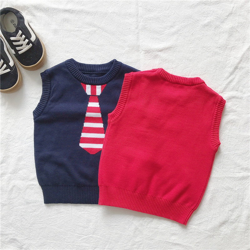 Autumn and winter 3-year-old children's pullover vest college style baby cotton double-layer knitted vest 5 boys and girls vest