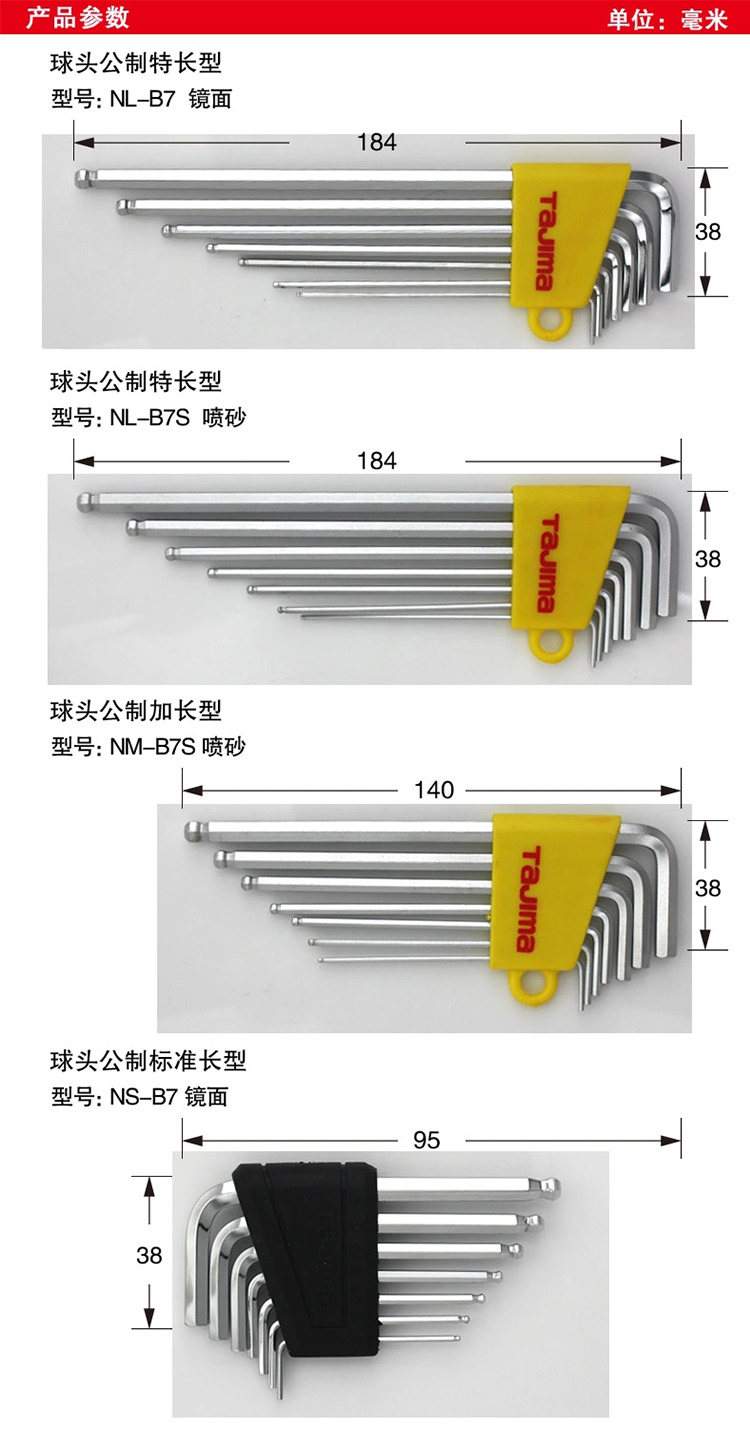 Tajima Tian Island Inner Hexagon Wrench Ball Head Mirror Male lengthened 7 pieces NM-B7 NS-B7NM-B7