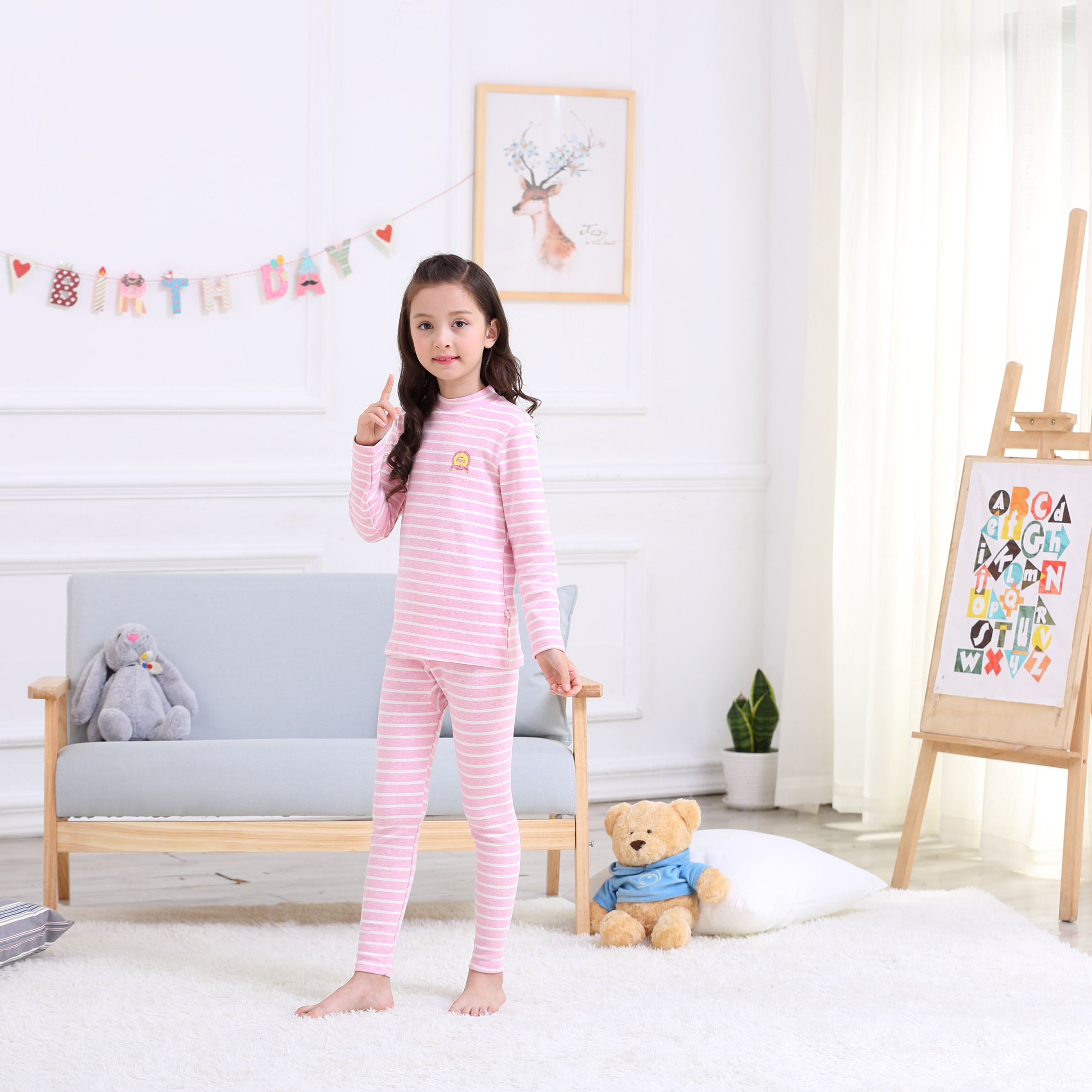 Counter Spring and Autumn Children's Warm Clothes Winter Base Set Girls Pajamas Middle and Big Girls Bao Shu Velvet Underwear