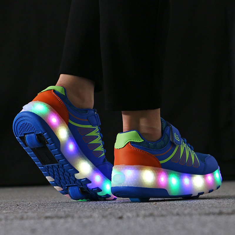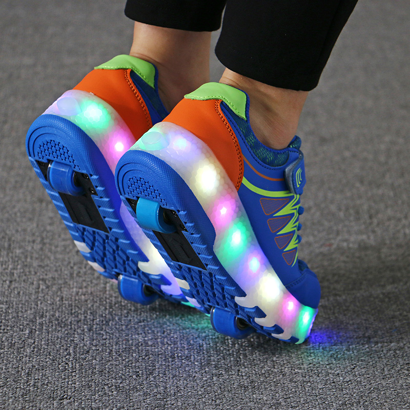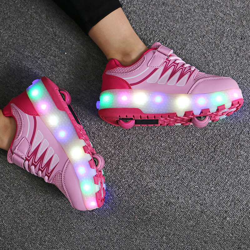 With Lamp Double Wheel Storm Walking Shoes Men And Women Single Wheel Flash Light Burst Walking Shoes Auto-Section Student Pulley Shoes Wheel Shoes