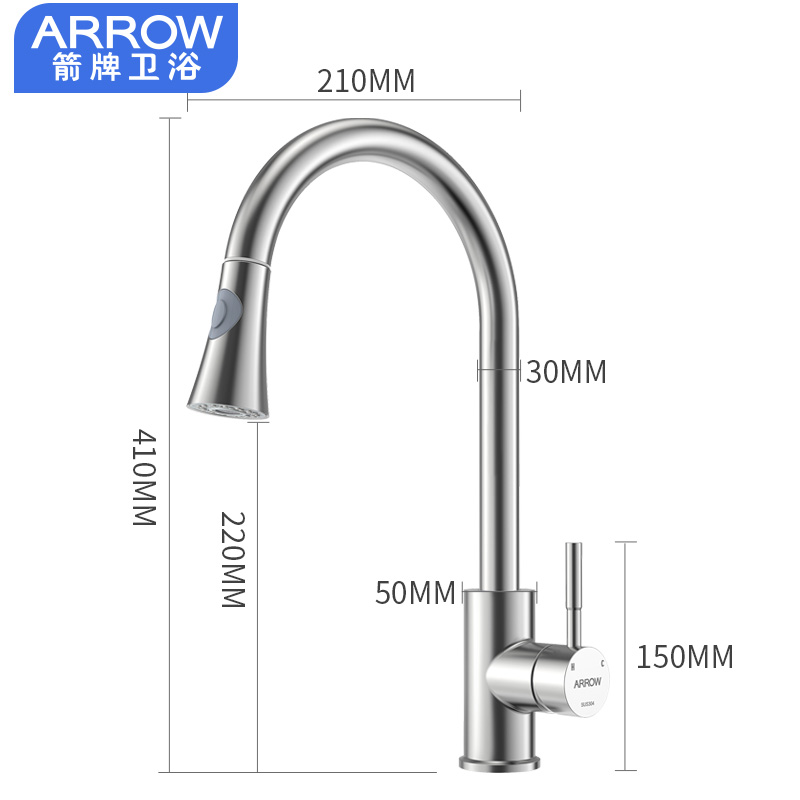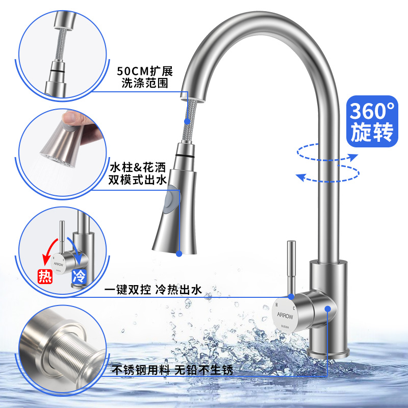Arrow plate washing basin kitchen pull-out tap hot and cold tap anti-splash water table basin Single-hole sink tap