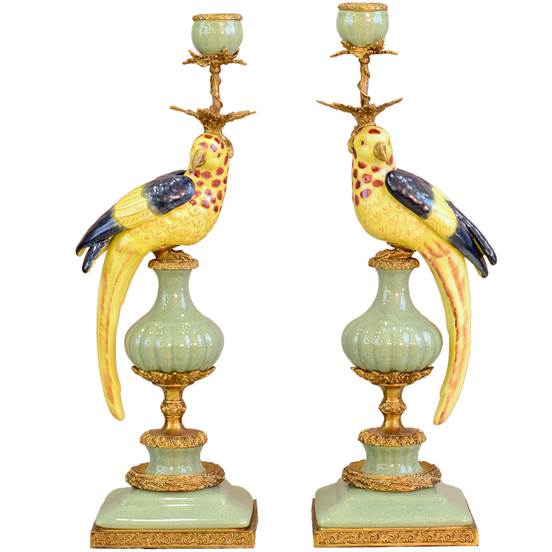European high-grade pure copper parrot candle holder ceramic ornaments a pair of American living room entrance fireplace creative crafts