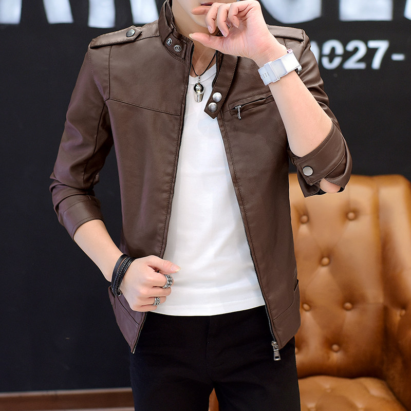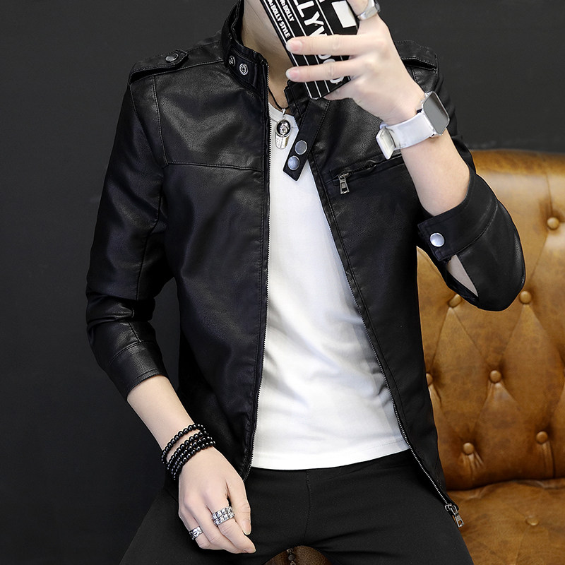 Trendy men's motorcycle leather jacket men's pu leather jacket men's jacket thin section Korean version of the self-cultivation 2022 new youth handsome