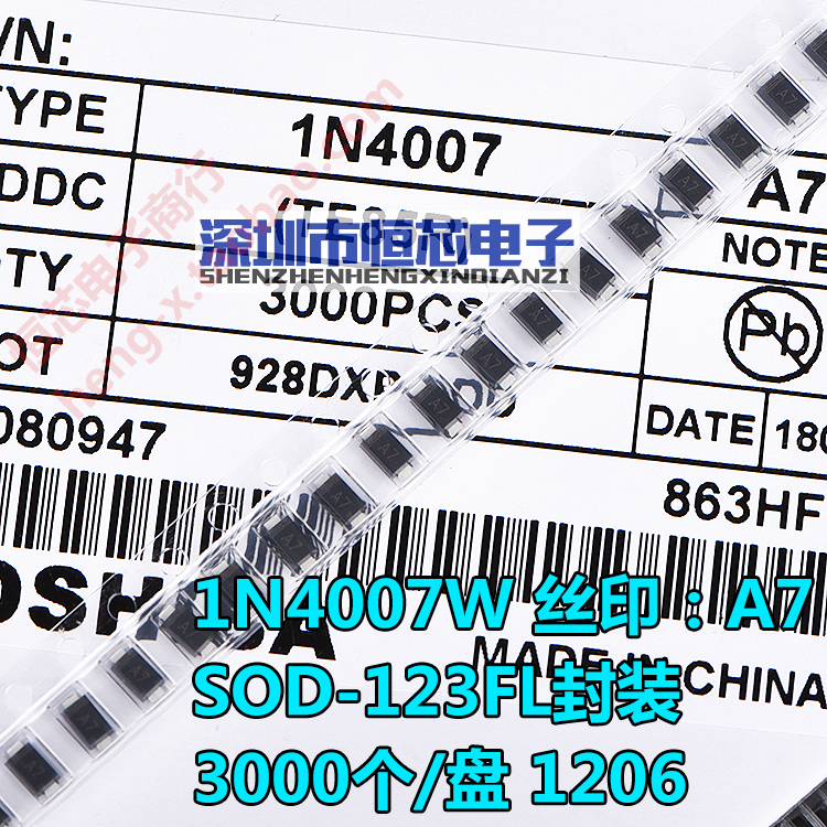 SMD Rectifier Diode 1N4007W A7 T7 Silk Screen: A7 SOD-123FL 1206 Flat Foot 3K Disk