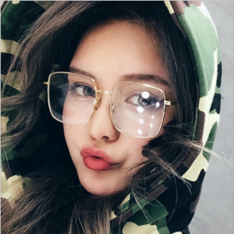 Zhou Yangqing with glasses female Korean version of the tide net Red square Phnom Penh makeup flat mirror large frame round face myopia frame