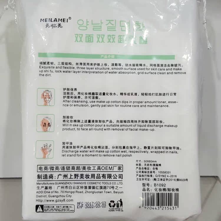 Lamela 222 pieces of cotton makeup remover cotton thick double-sided double-effect makeup moisturizing makeup remover cleansing tool