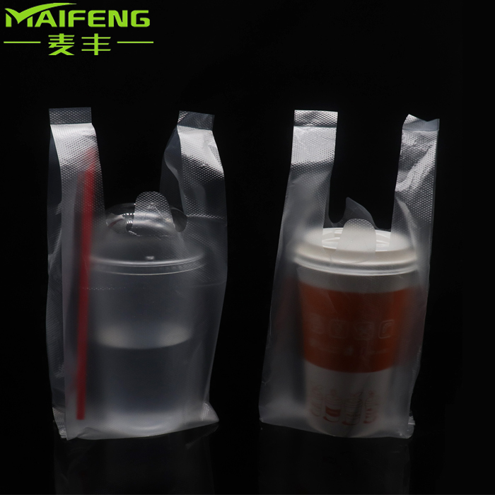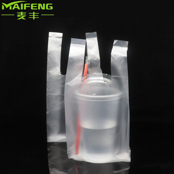 Disposable thickened plastic milk tea cups, one cup or two cups of coffee takeaway packaging handbag custom 100pcs