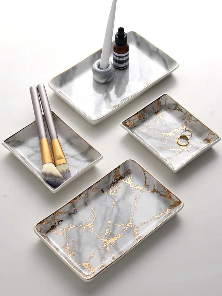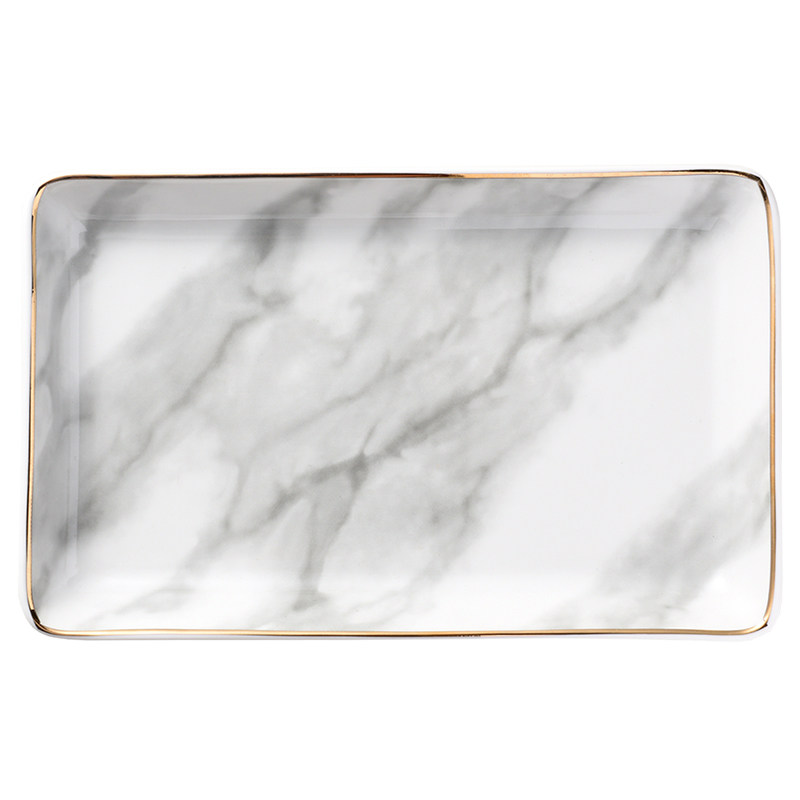Xiao Xijia Nordic style marble ceramic square plate Golden Edge dinner plate dim sum plate jewelry plate storage plate