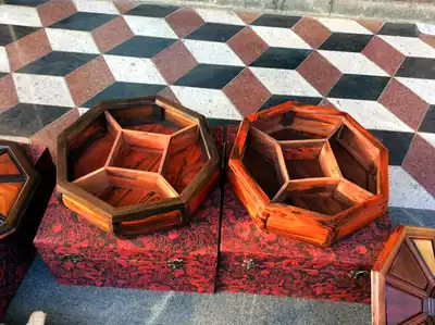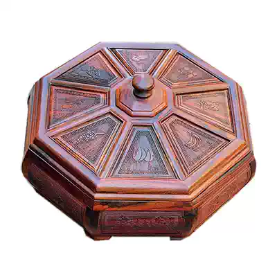 Chinese classical solid wood fruit plate multi-grid candy box dried fruit plate moisture-proof snack box basket food box red acid branch wood carving