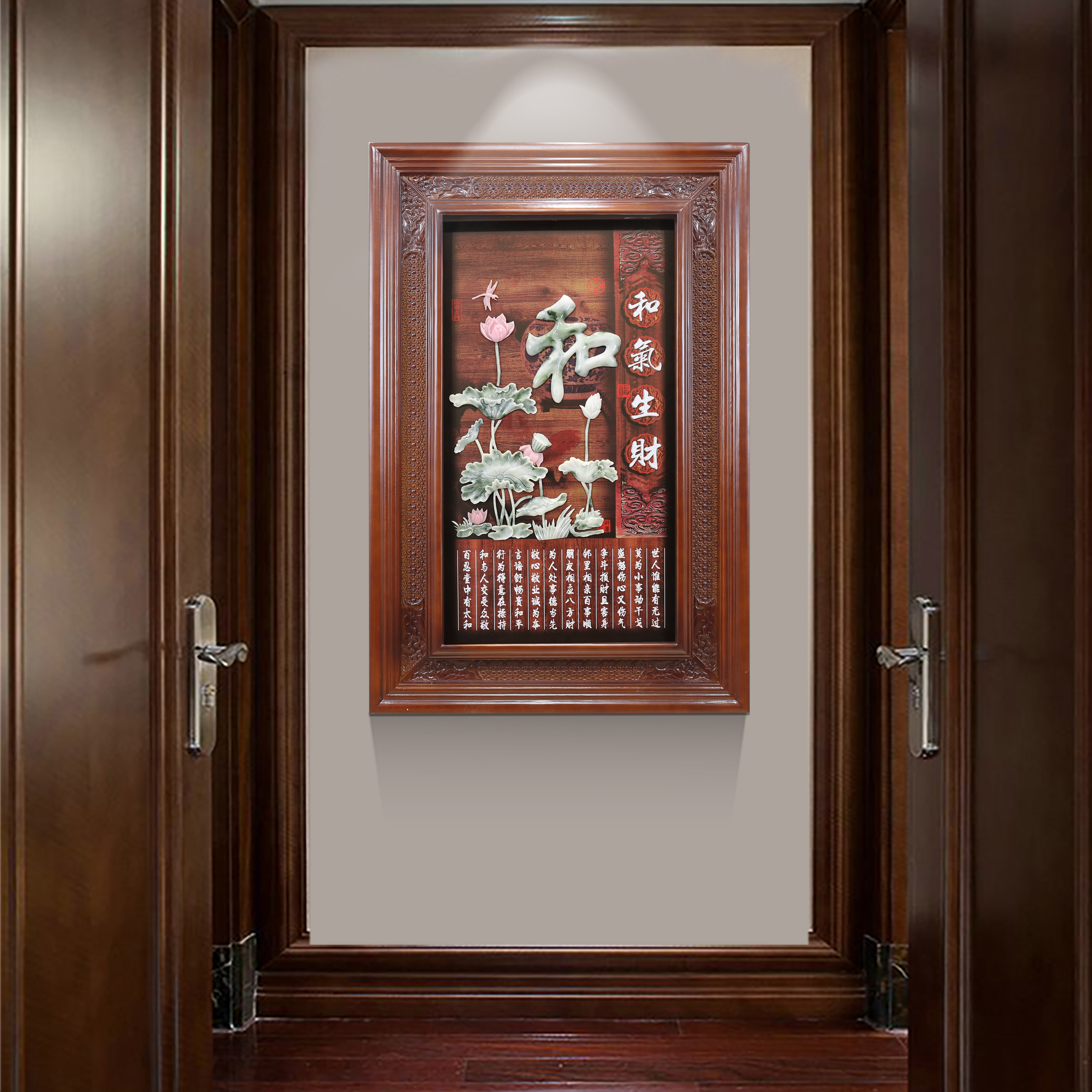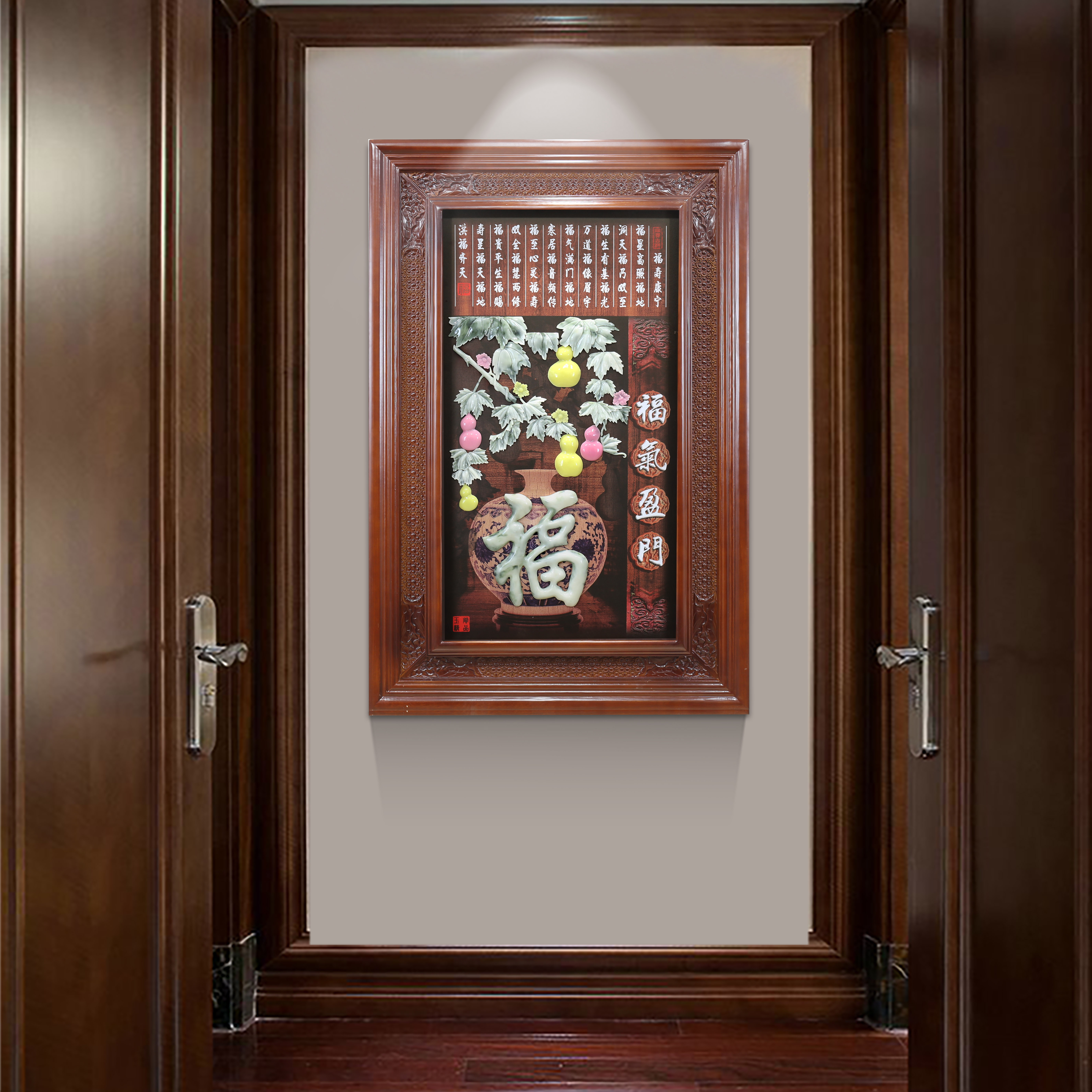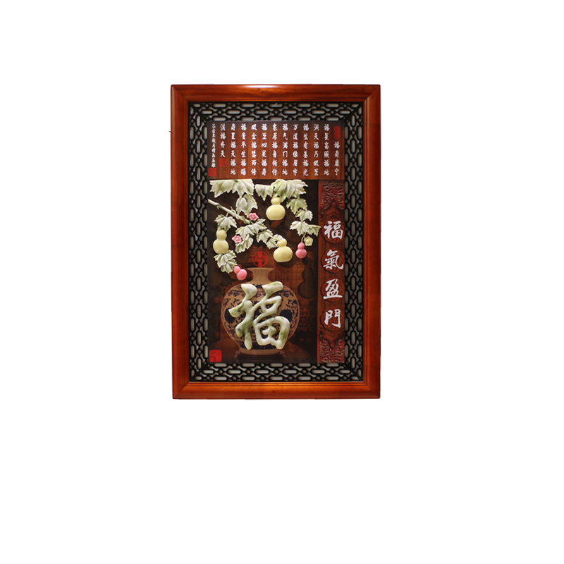 Living room entrance porch decorative painting 3D three-dimensional relief painting Chinese style solid wood jade carving painting aisle corridor vertical hanging painting