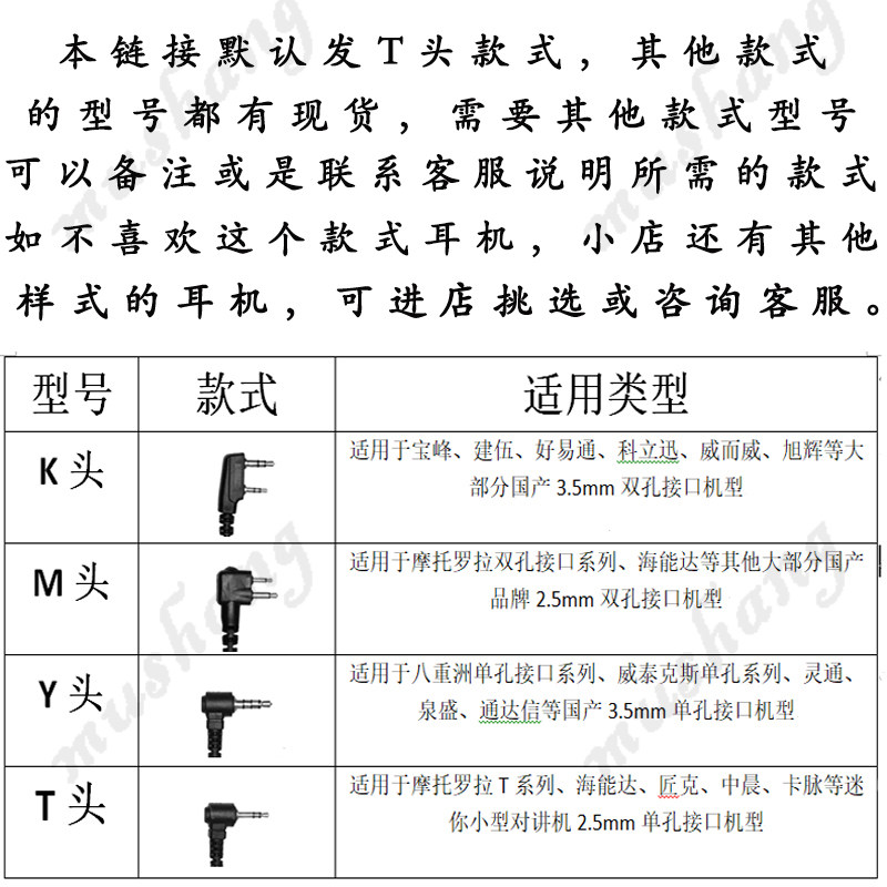 Talkback Small small machine ear machine line universal t head mini talkback machine headphones Single-hole coarse wire ear hanging ear machine line