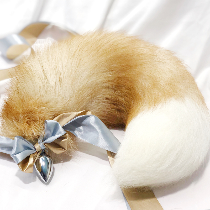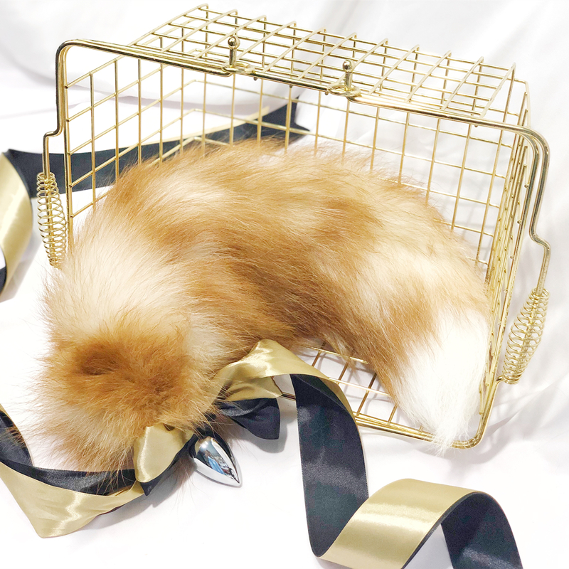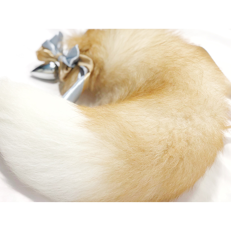 W013 Kirky Yellow Removable Metal Anal Plug Fox Real Fur Tail Sm Tune for Female Spice Vestibule