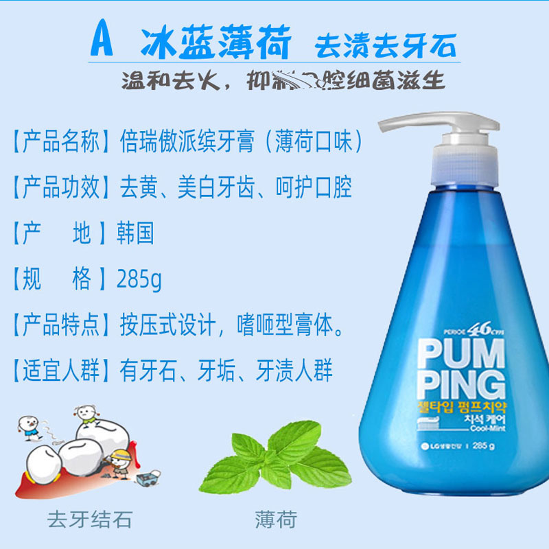 LG South Korea imports Berry's Ao Pie Bin pumping adult toothpaste liquid press-type bright white clean and clear odor