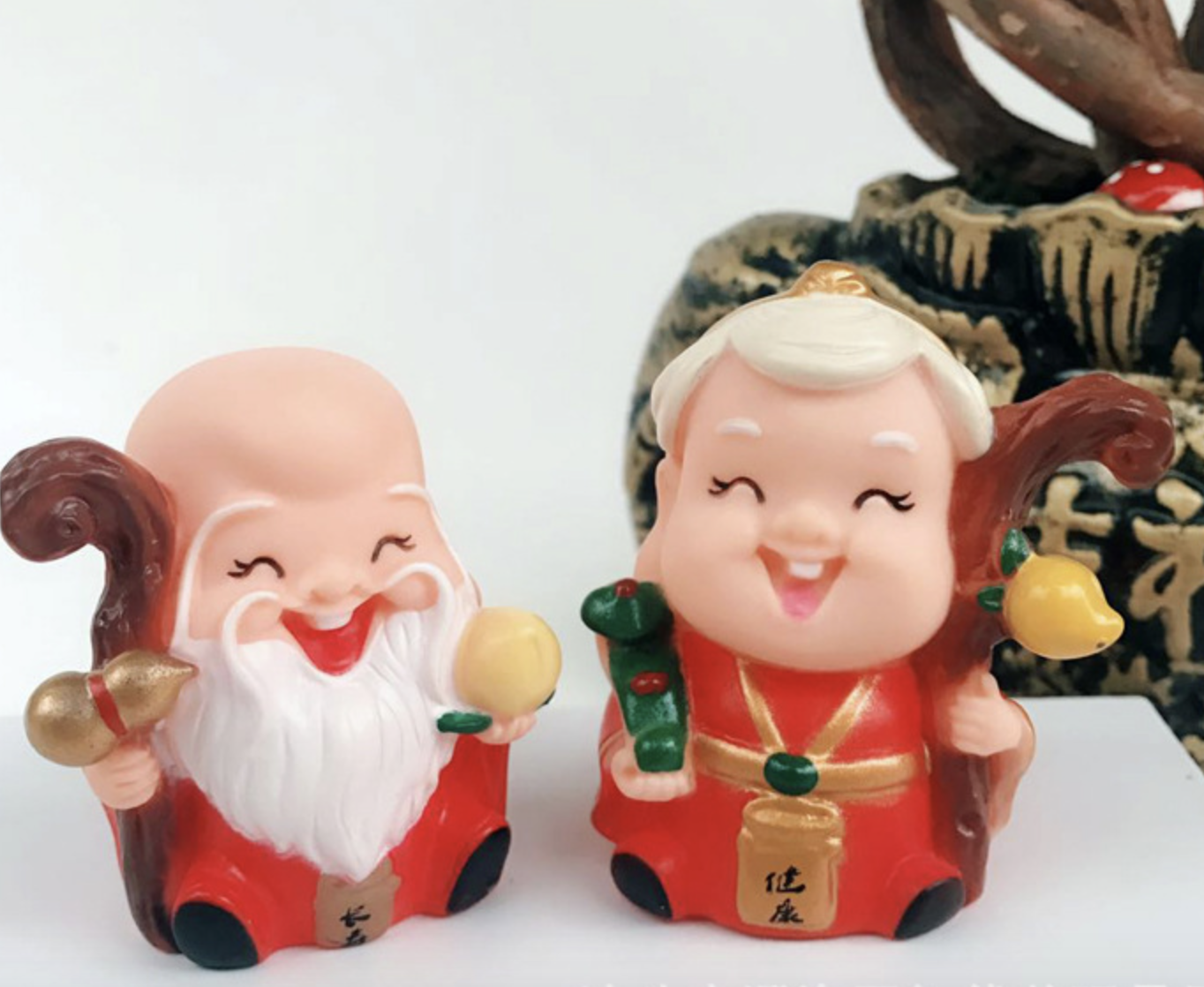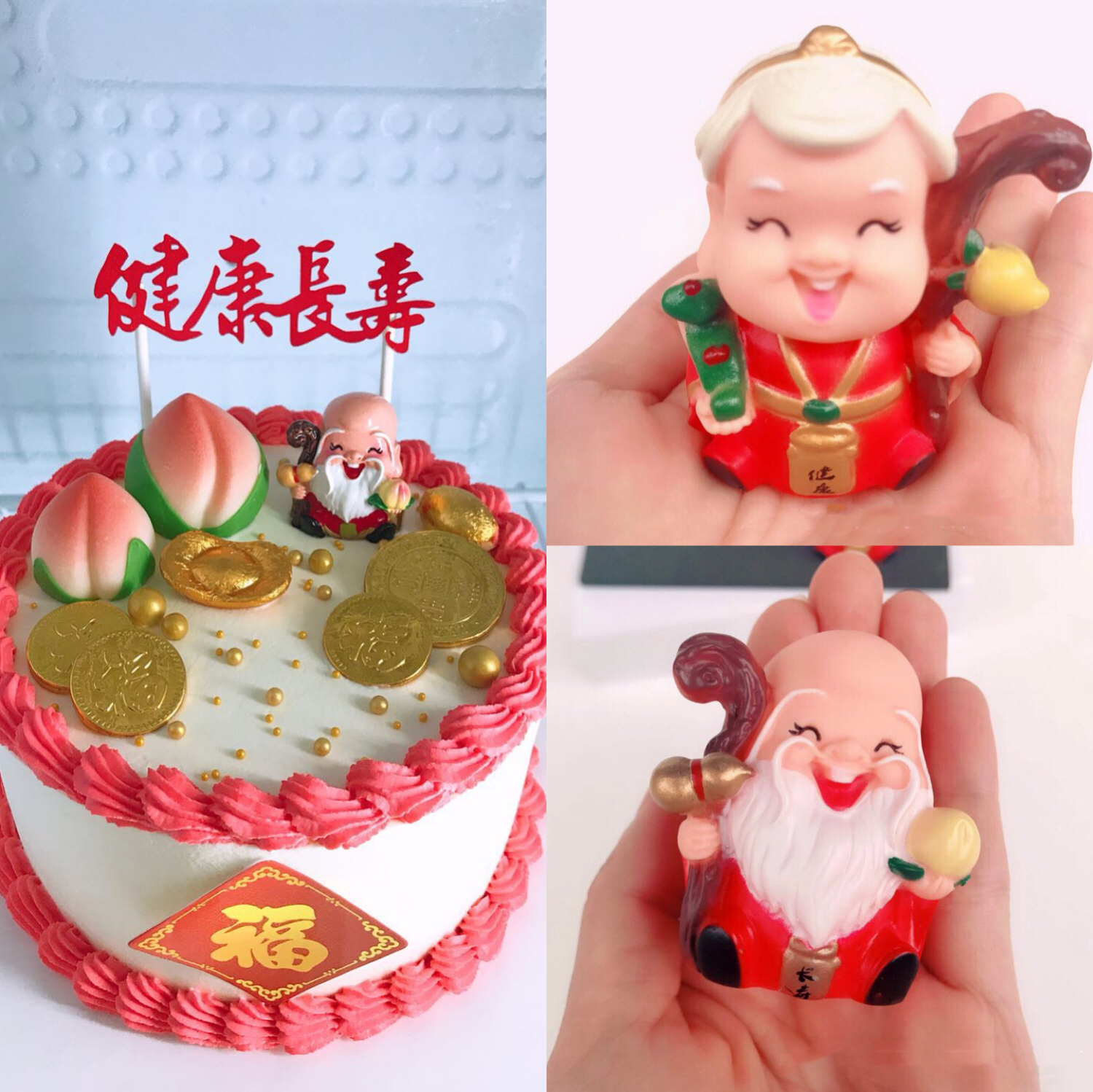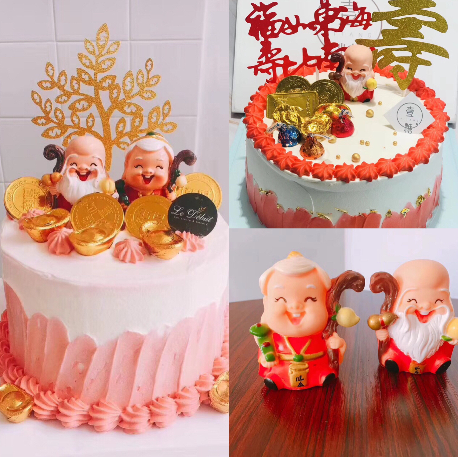 Cake Decoration Auspicious Clouds Flying Cranes Shou Gong Shou Po God of Wealth Shou Peach Insert Card Ornament Money Tree Shou Health and Longevity Couplet