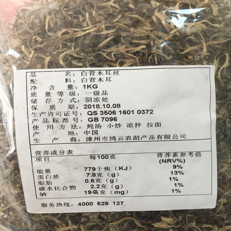 Japanese cuisine white back black fungus silk 1kg Japanese ramen stir-fried vegetable soup cold mix multi-saving 1