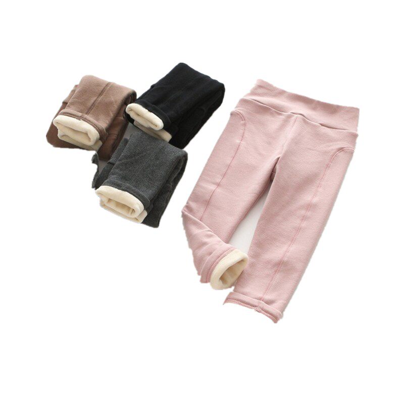 Girl plus pants in autumn and winter new children high waist belly care pure color with baby thickened leisure long pants