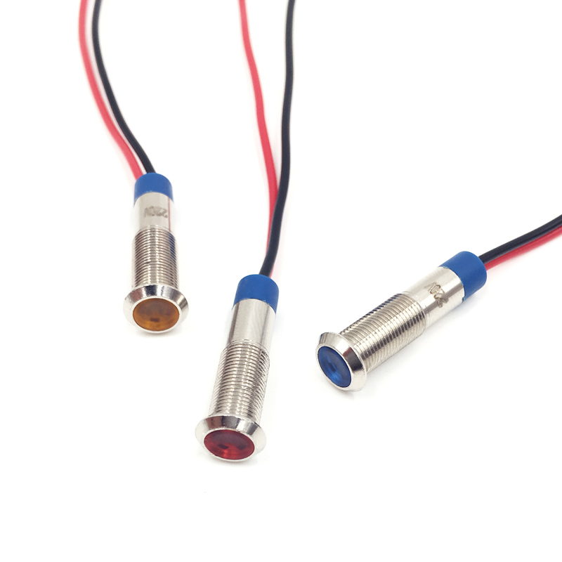 6MM metal indicator light waterproof signal light LED 12v 24V 220V red, yellow, blue, green and white power work light