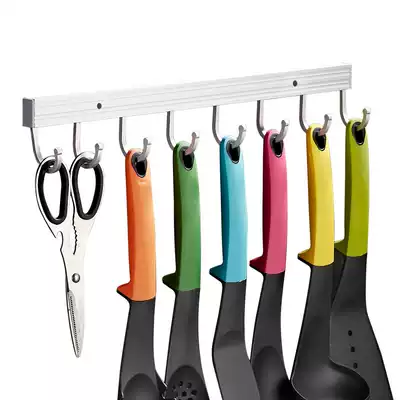 Punch-free kitchen adhesive hook rack spatula storage layer shelf wall hanging suction cup space aluminum pendant kitchenware supplies