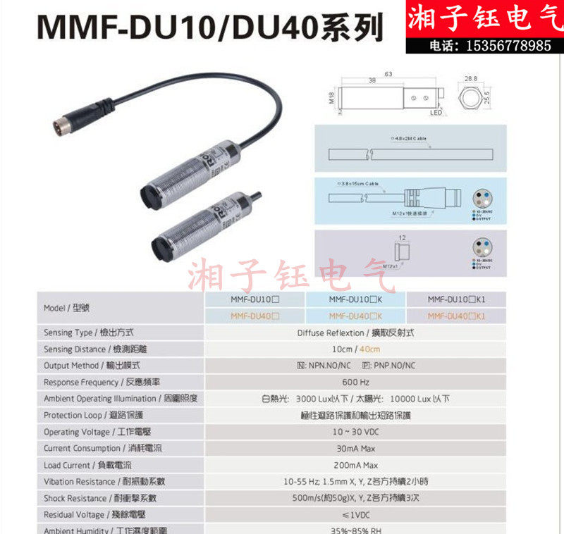 Original RIKO Cylindrical diffuse reflective optical switch MMF-DU10N MMF-DU40N sensor
