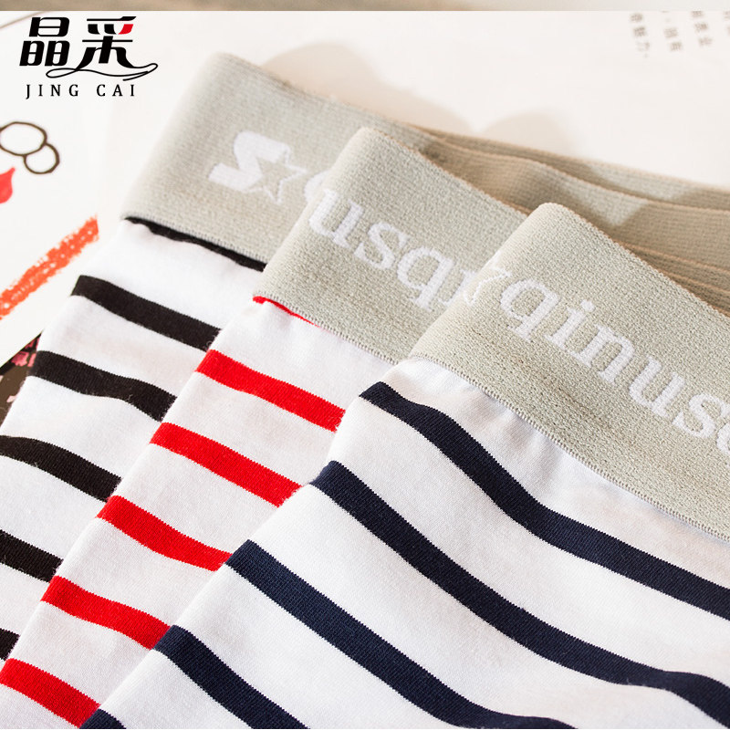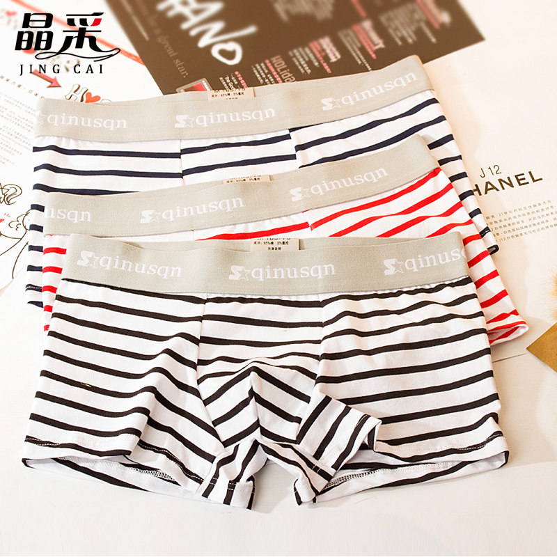 Tidal Male Young men's underwear Cotton low waist Sexy male flat corner pants Summer Personality Striped Safety Pants Four Corner Pants Head