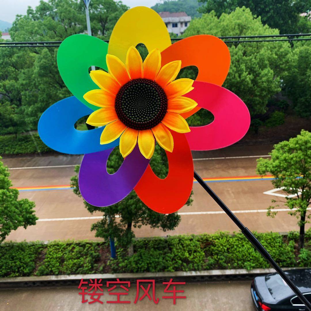 Three sunflower windmills a single layer of bright sheet windmill small animal windmill Windmill Bright Sheet Up And Down Windmill 612 Butterfly Windmill Double opening Windmill Big Cartoon Seven Wheels Small Bee Windmill Shining Three
