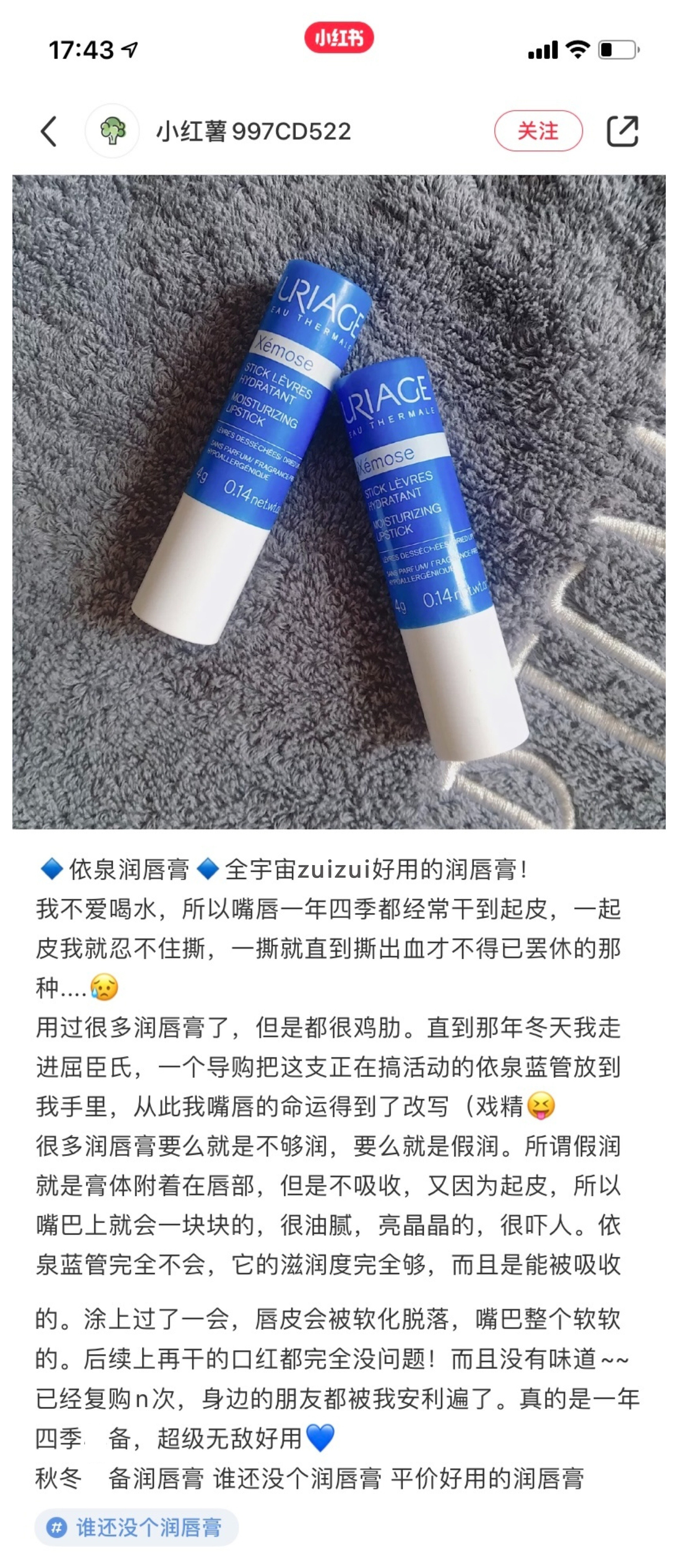 French uriage Yiquan moisturizing lipstick -- small white tube small blue tube soft and moisturizing to nourish blue and white lipstick
