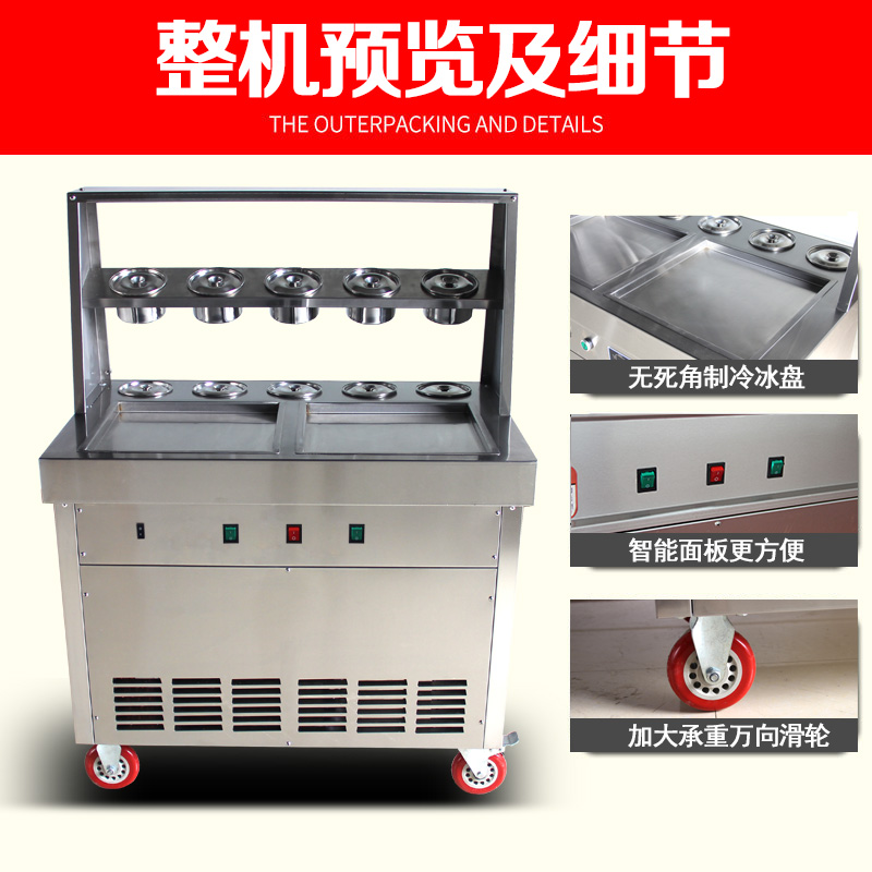 Full of red luxury double pot stir-fried ice machine stir-fry yogurt machine Commercial fried ice porridge milk fruit machine fried ice cream rolling machine