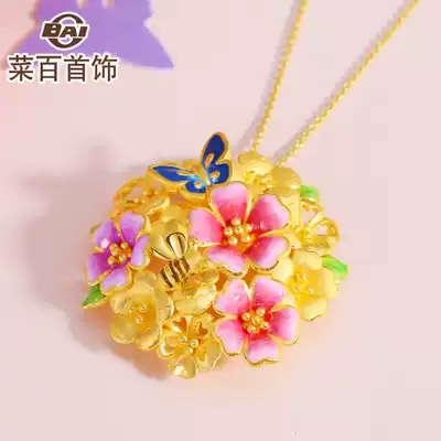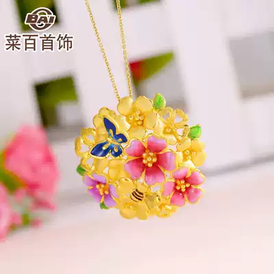 Cai hundred jewelry gold flower brocade series Lucky Peach Blossom baking color pendant