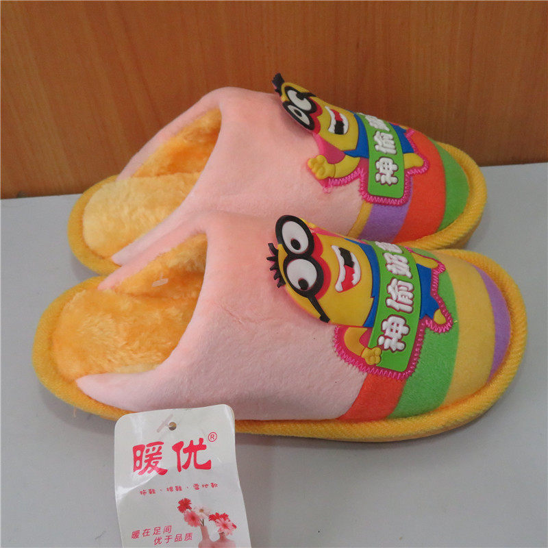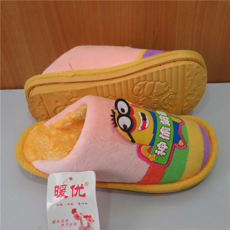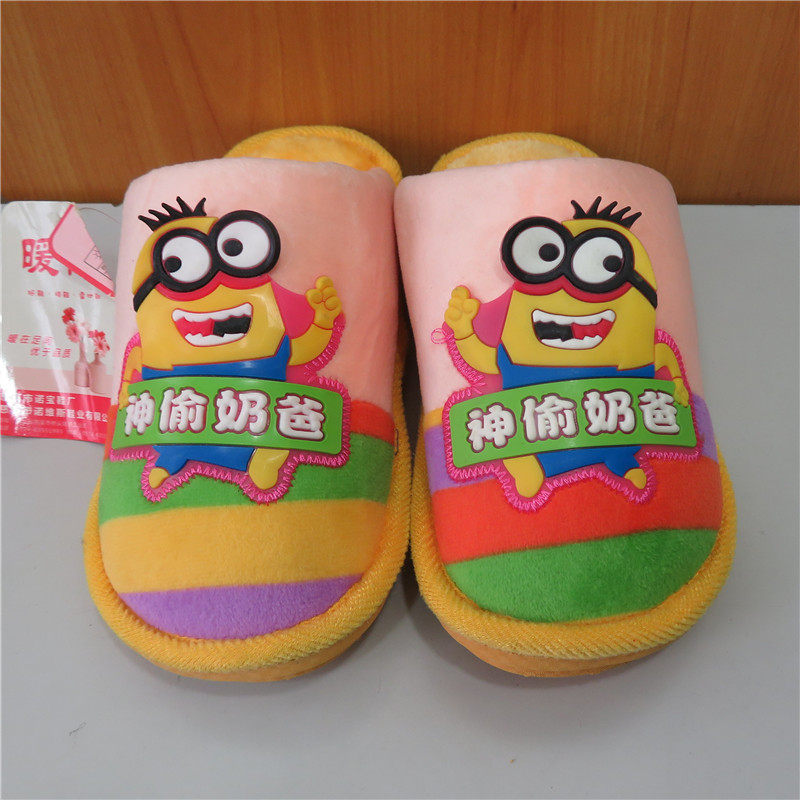 Winter Children's cotton slippers Home warm and soft anti-slip kiddie baby card Love little yellow man cotton tug