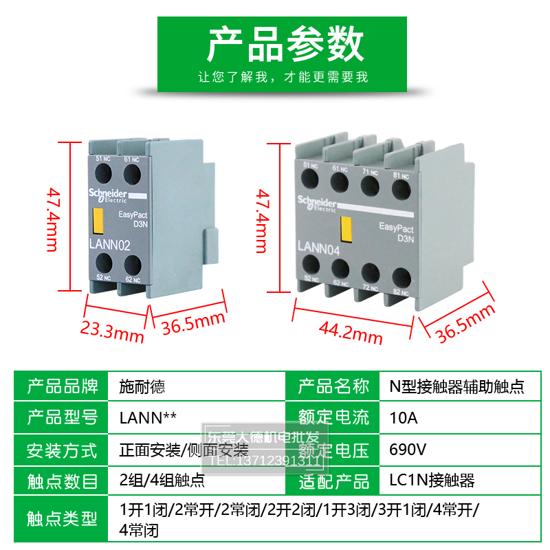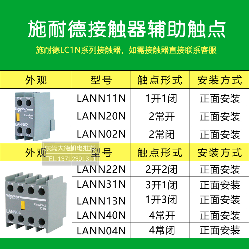 Schneider LC1N contactor attachment auxiliary contact LANN11N is always open and closed front installation