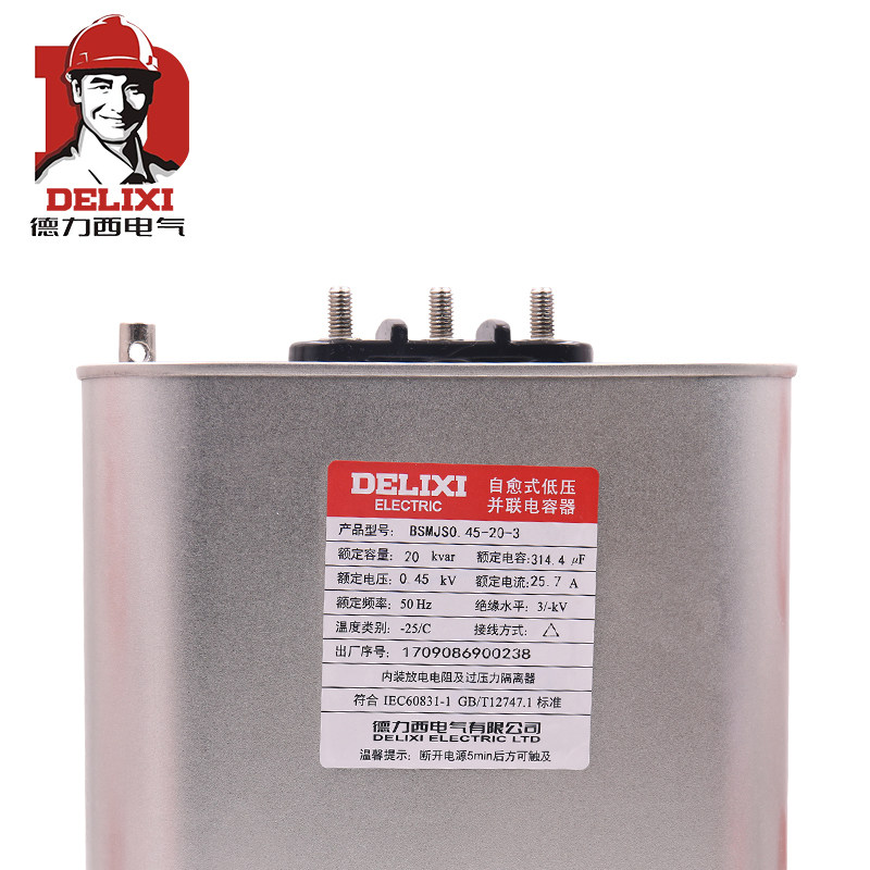 Delixi self-healing low-voltage capacitor BSMJS0 45 20-3 parallel power capacitor reactive power compensation