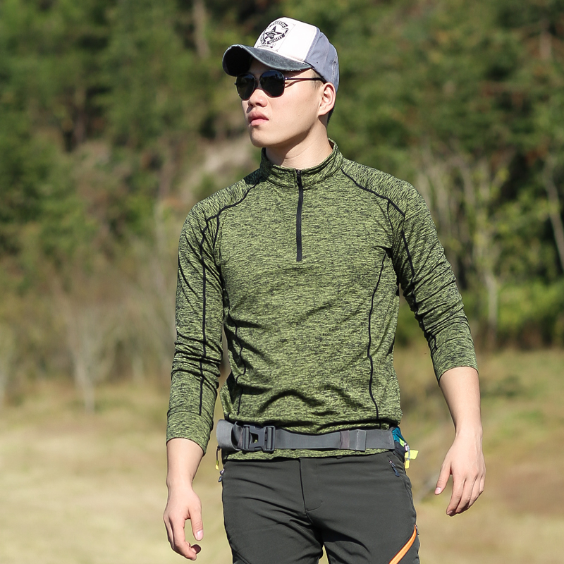 Outdoor long-sleeved T-shirt men's velvet thickened warm breathable large size quick-drying top men's running fitness suit base shirt
