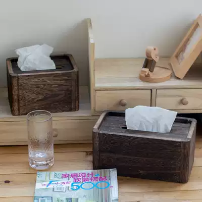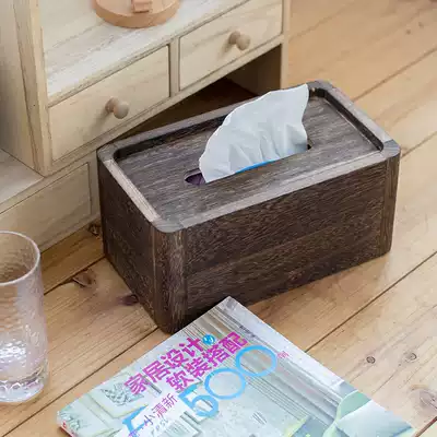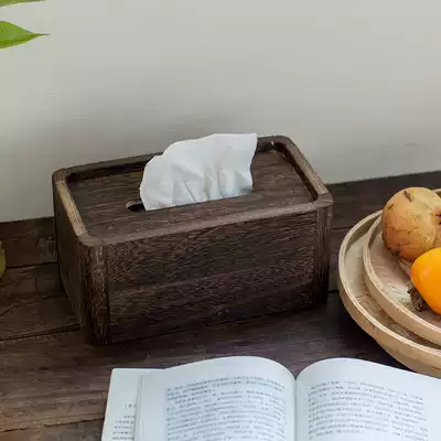 Simple solid wood tissue box roll toilet paper sanitary paper box home hotel napkin box retro roasted paulownia wood extraction type sanitary paper box