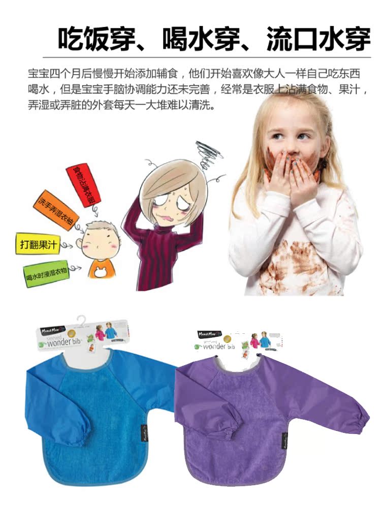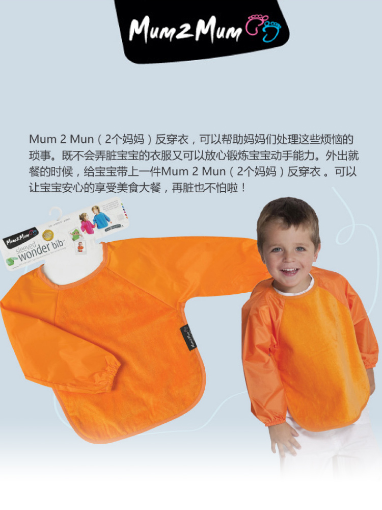 Mum 2 Mum Baby reverse dress Baby Long sleeve overcoat Dinner jacket Children's bib Cotton waterproof