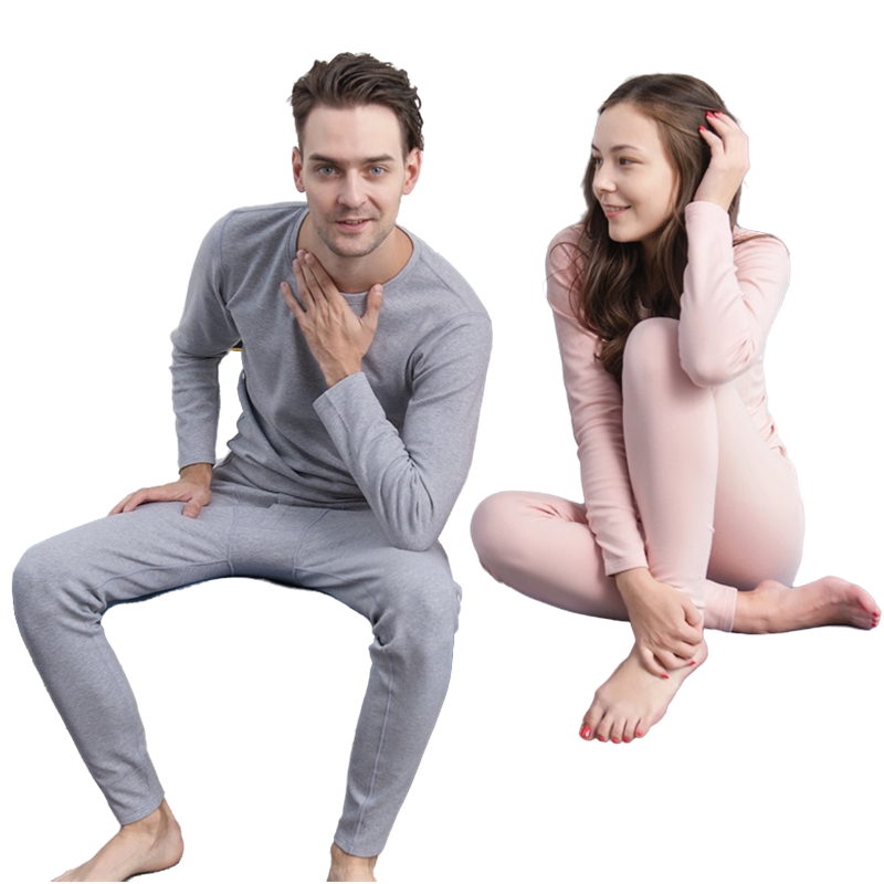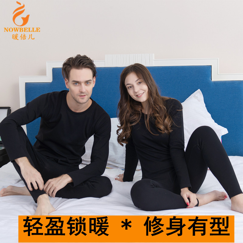 Warm Double Autumn Clothes Suit Men's Pure Cotton Leka Round Collar Women Sanitary Pants Foundation Underwear Autumn Winter Pure Color Beating Bottom Thin New
