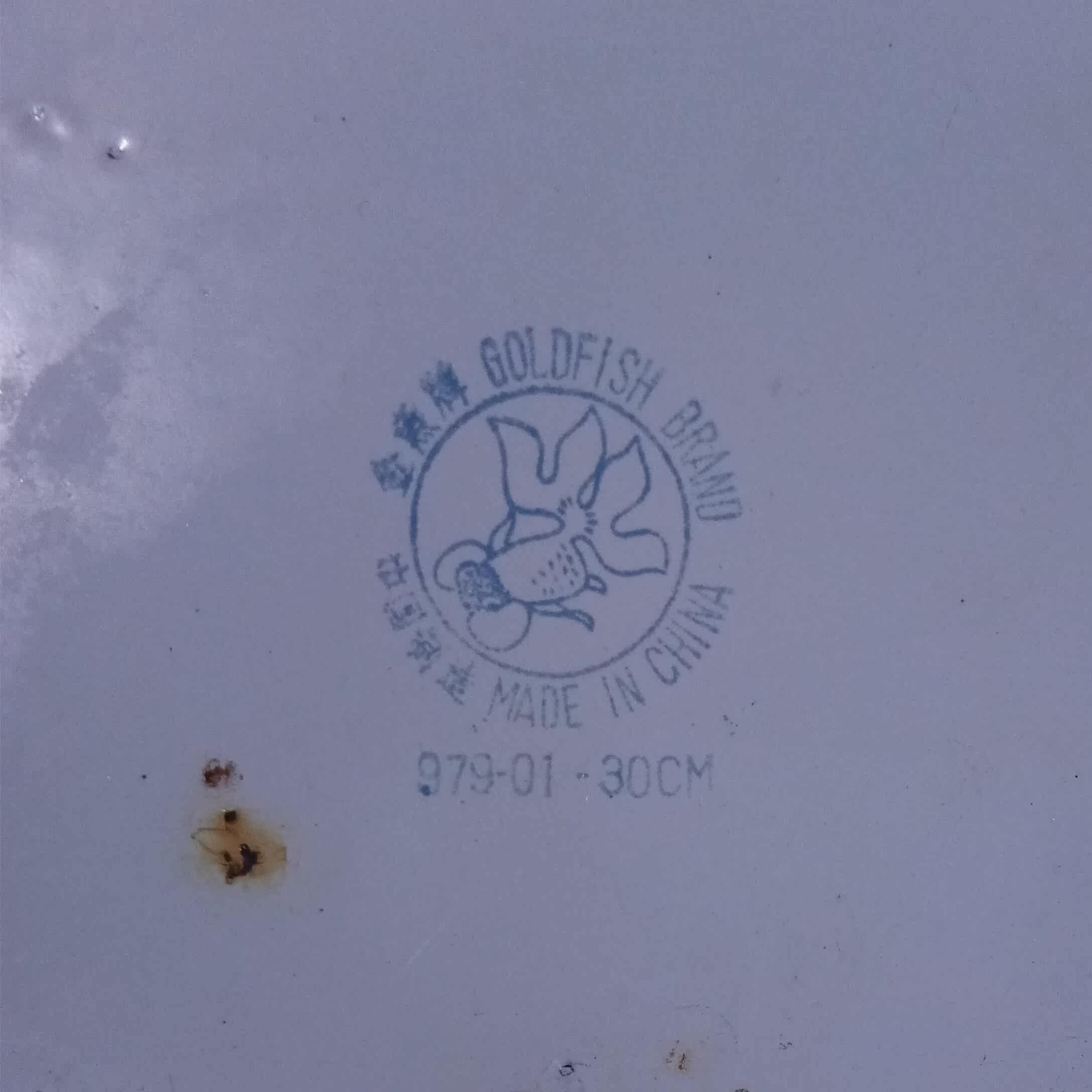 30cm 1970s oval old enamel plate 1979 goldfish brand enamel fish plate vintage old ornament