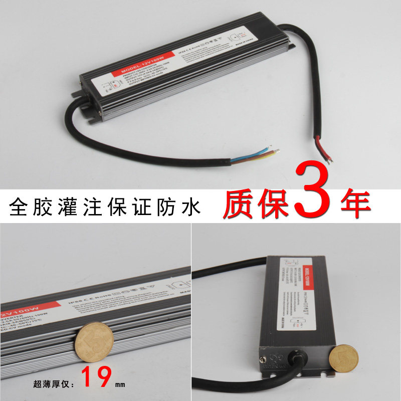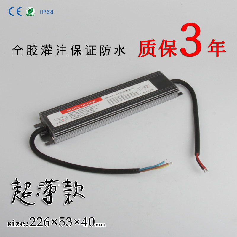 Ultra thin waterproof power DC12V24V100W thick 20mm light box bathroom overall cabinet waterproof transformer IP68