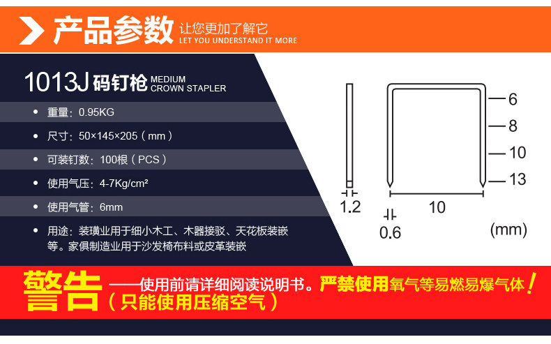 East Asia 1013J Pneumatic Code Nail Gun U Type Nail 1010J Woodworking Furnishing Wooden Plate Door Type Nail 1008J Yard Nail