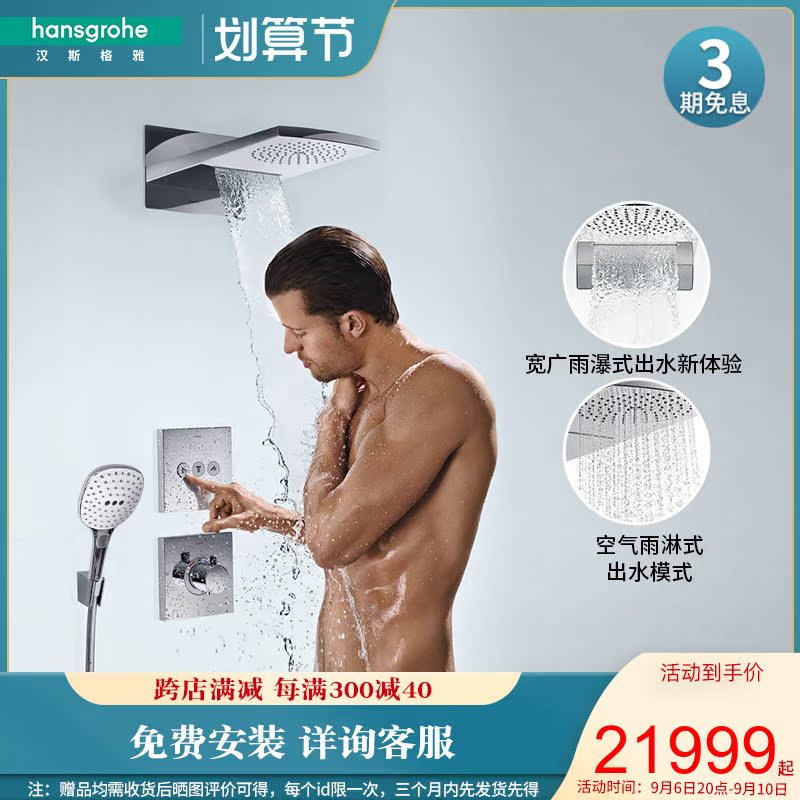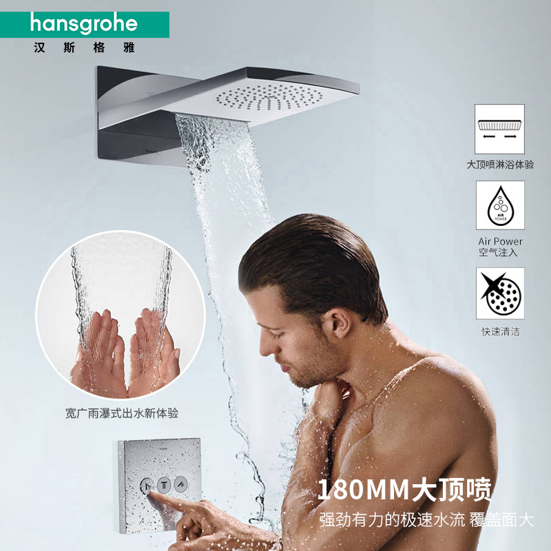 Waterfall 180 Two-speed Overhead Shower 120 Raindance Handheld Thermostat Set (3-way water outlet)