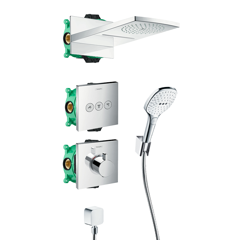 Hansgrohe Raindance Handheld Waterfall Overhead Shower Concealed Wall Mounted 3-Way Outlet Thermostatic Shower Kit